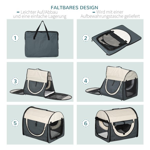 Dankzij de opvouwbare functie kunt u de transportdoos eenvoudig opbergen wanneer deze niet in gebruik is, waardoor u ruimte bespaart in uw huis of auto. De stabiele handgrepen zorgen voor een hoog draagcomfort, zowel voor u als voor uw hond.