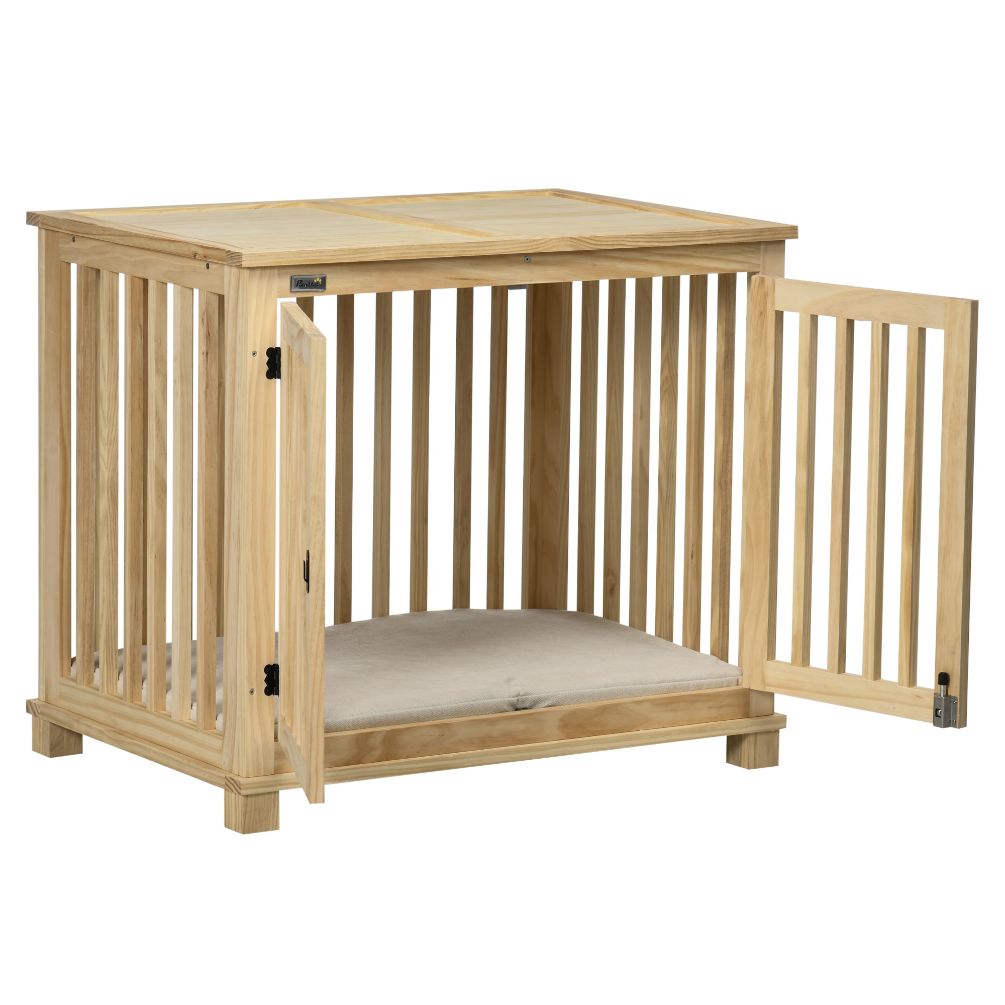 Het natuurlijk houten frame en het decoratieve ontwerp maken van deze hondenkooi een prachtige toevoeging aan uw interieur. Het is niet alleen een comfortabele slaapplek voor uw hond, maar ook een stijlvol meubelstuk in uw huis.
