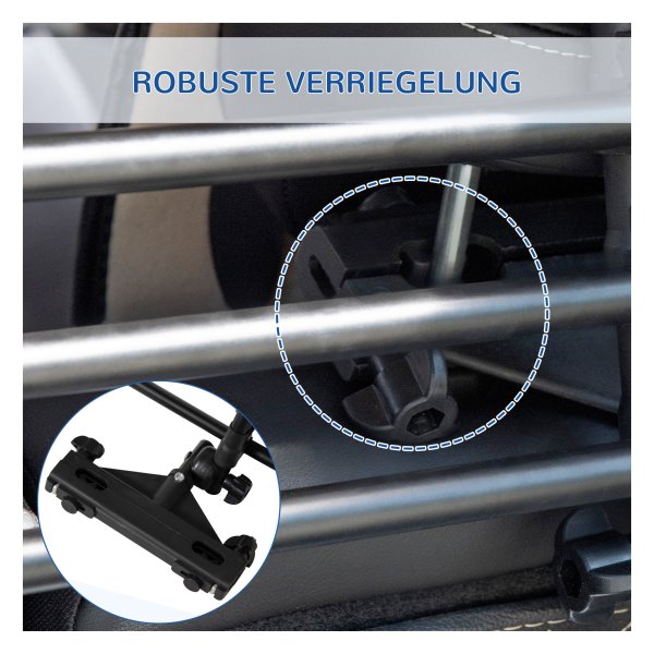 Het hondenrek is gemakkelijk te monteren en kan eenvoudig worden aangepast aan de hoogte en breedte van jouw auto. Geen gedoe meer met onhandige oplossingen, dit hondenrek past perfect in elke auto en zorgt voor een veilige omgeving voor jouw hond tijdens het reizen.