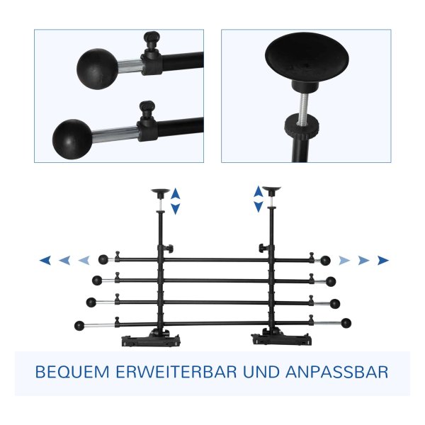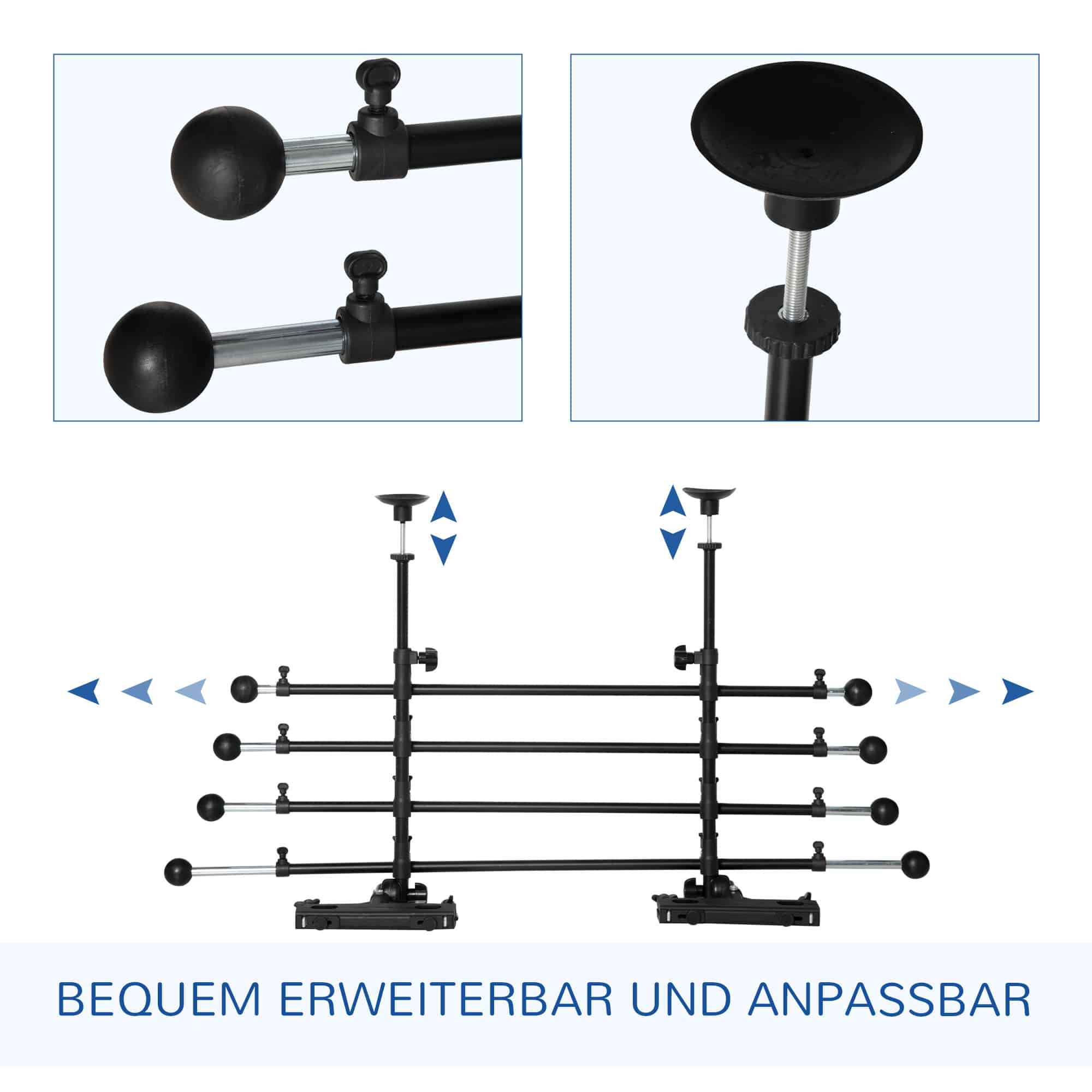 De kleur van het hondenrek is zwart en het is gemaakt van duurzaam staal, ABS plastic en PVC. Met een verstelbare breedte van 85 tot 140 cm en een verstelbare hoogte van 40 tot 50 cm past dit hondenrek in vrijwel elke auto. Het wordt geleverd met 1 divider zodat je jouw hond veilig kunt vervoeren zonder afleidingen.