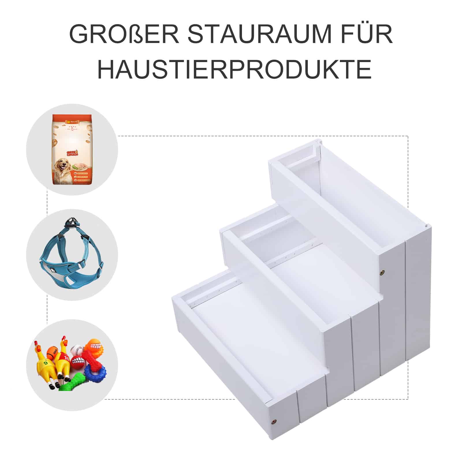 Deze opvouwbare hondentrap is ontworpen met het oog op gemak voor zowel huisdier als eigenaar. Door het lichte gewicht en compacte formaat is de trap eenvoudig te verplaatsen en op te bergen. Daarnaast is er gedacht aan opslagruimte onder de treden, zodat u alle benodigdheden voor uw huisdier binnen handbereik kunt houden.
