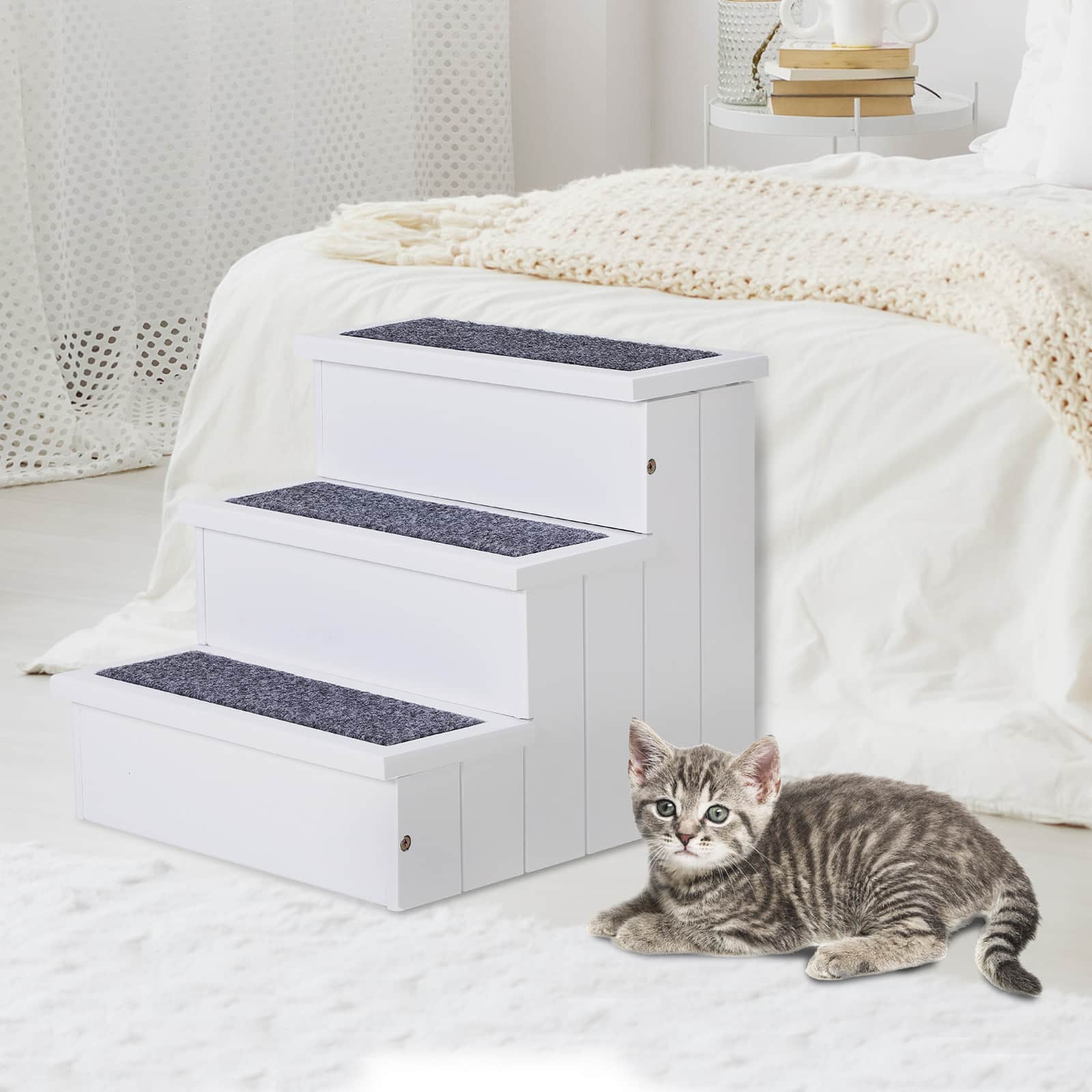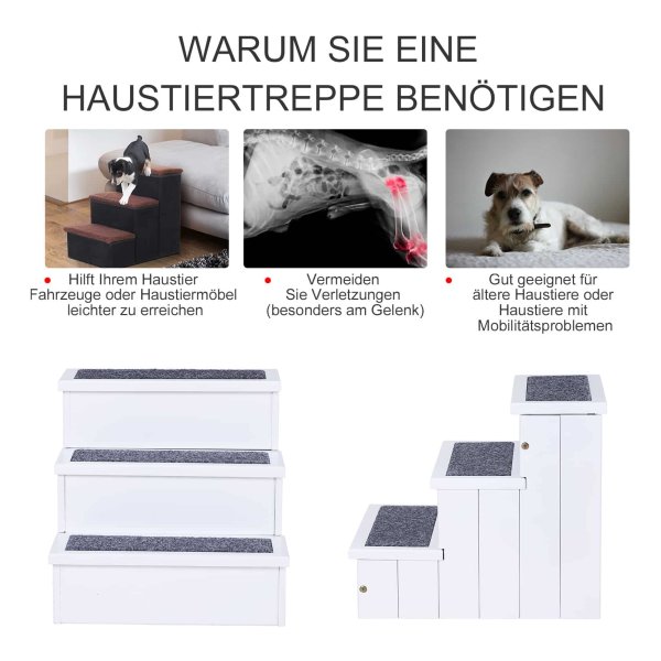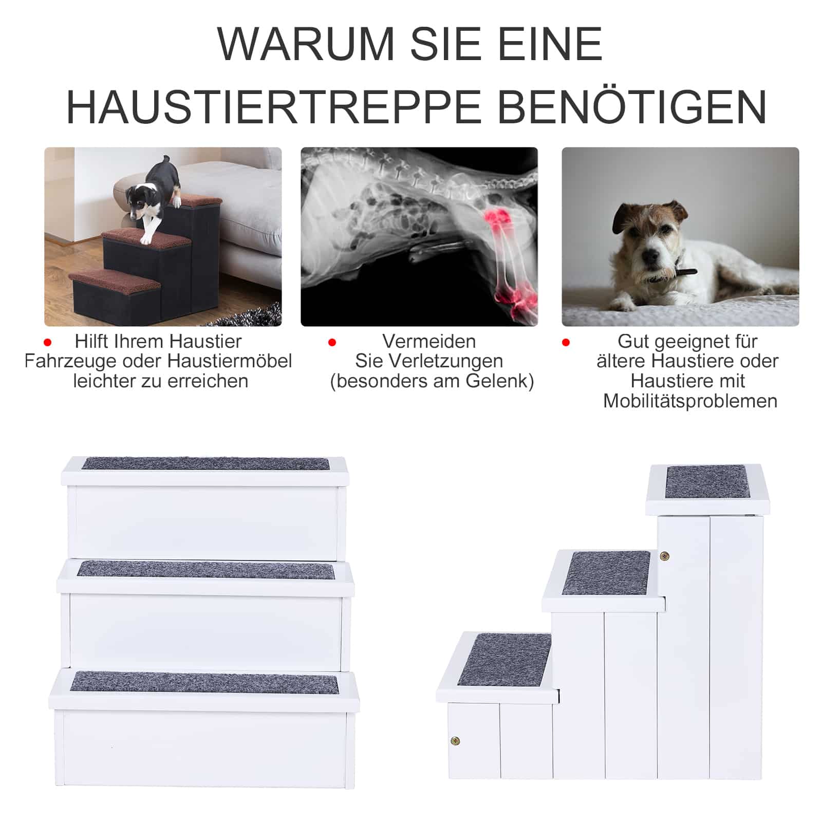 Oudere huisdieren hebben vaak moeite met het bereiken van hoger gelegen plekken, zoals de bank of de auto. Met de opvouwbare hondentrap in grijs van Pawhut kunnen uw trouwe viervoeters weer gemakkelijk overal bij komen.
