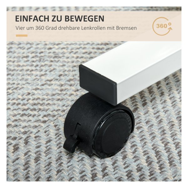 - Dankzij de 360-graden wielen is dit bureau eenvoudig te verplaatsen naar elke gewenste locatie. Dit is ideaal voor mensen die flexibel willen zijn in hun werkomgeving.