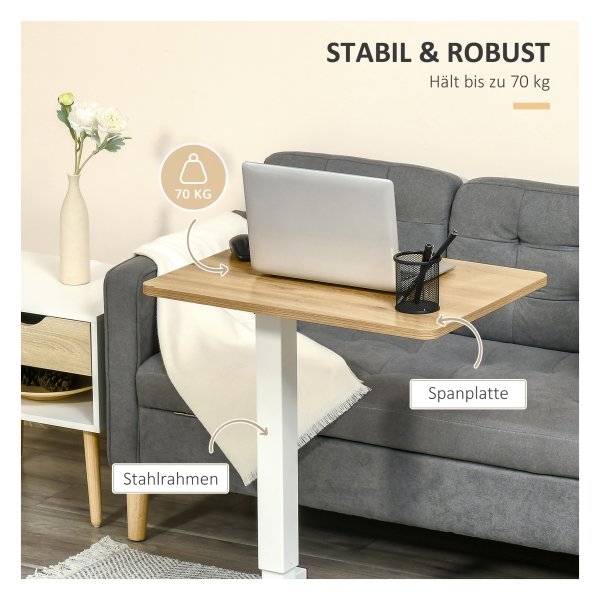 Daarnaast heeft dit bureau een verhoogde rand, waardoor je pennen en je mobiele telefoon veilig en op hun plek blijven, zelfs als je het bureau verplaatst. Zo kun je georganiseerd en geconcentreerd blijven tijdens het werken, zonder afleidingen.
