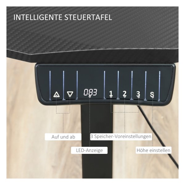 Dit bureauframe is voorzien van een handig LED-display waarop u de hoogte kunt aflezen. Met de vooraf ingestelde functie kunt u eenvoudig uw favoriete hoogtes opslaan, zodat u met één druk op de knop naar de juiste stand kunt gaan. De hoogte van dit bureauframe is verstelbaar van 74,5 cm tot 114,5 cm, waardoor het geschikt is voor zowel zittend als staand werken.