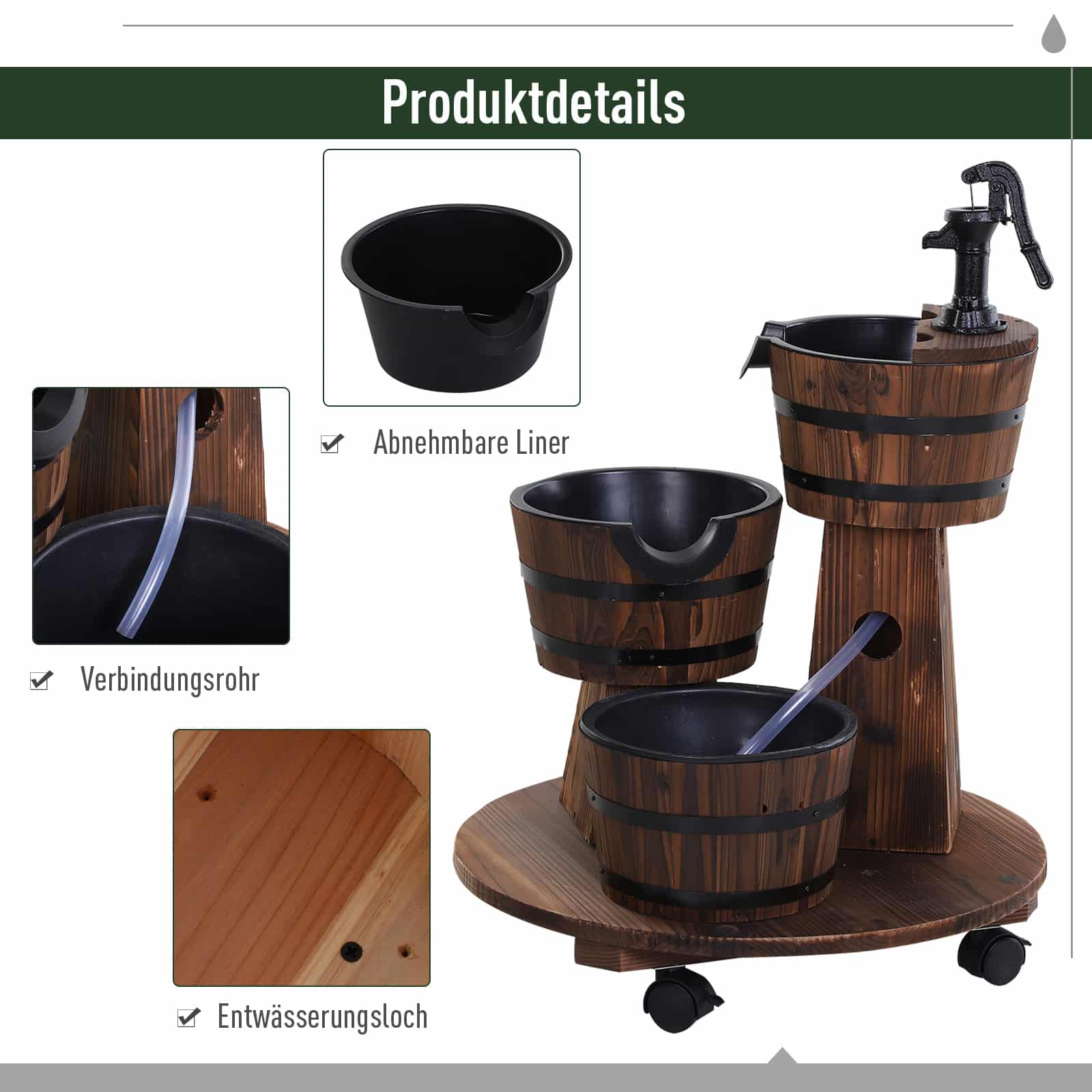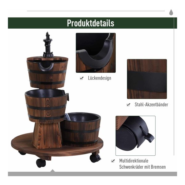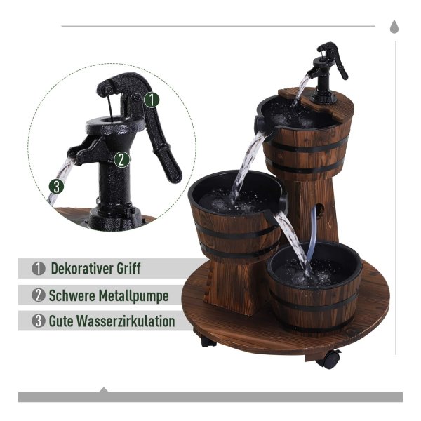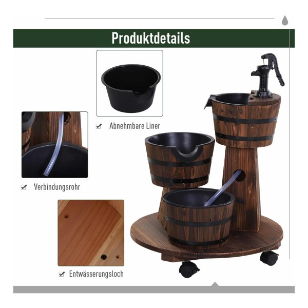 - De stevige eiken constructie zorgt voor duurzaamheid en weerbestendigheid, waardoor u jarenlang kunt genieten van uw fontein.