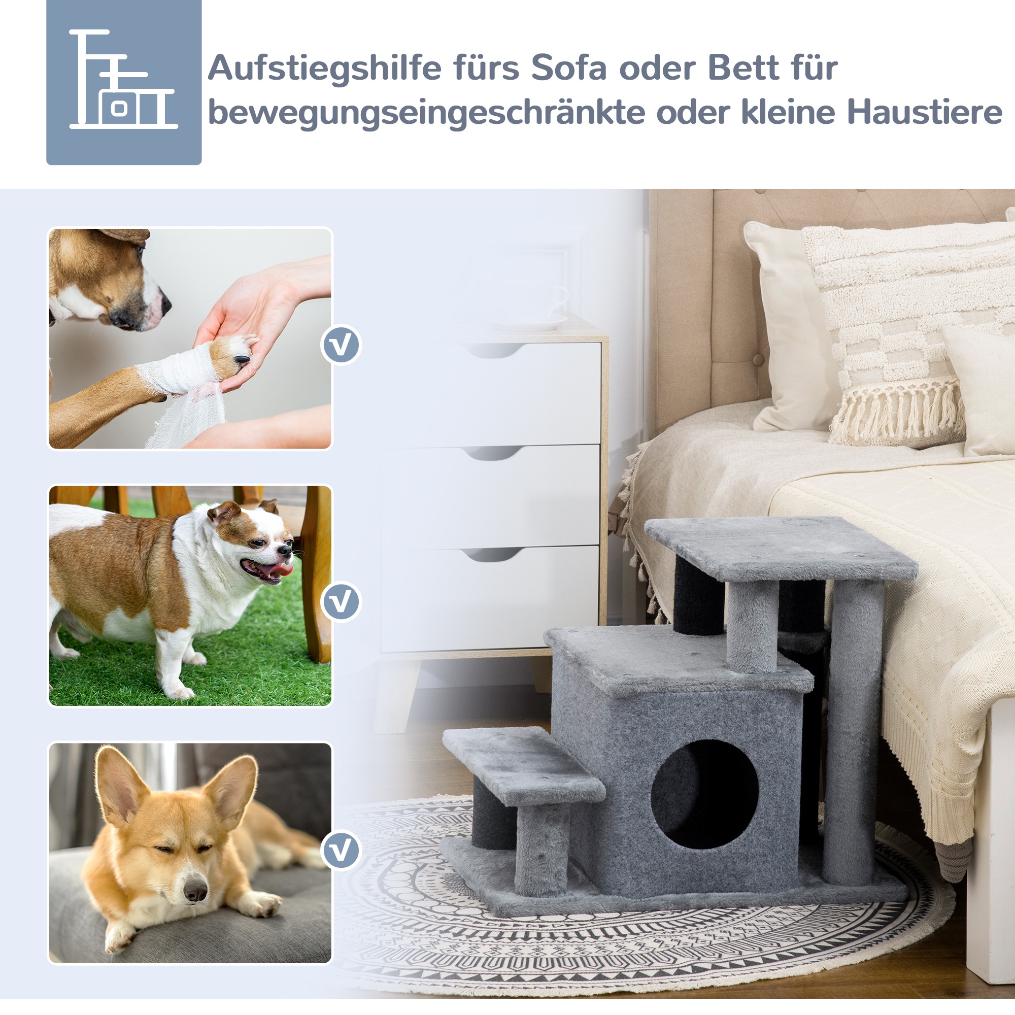 Heeft jouw dier moeite met op en af springen van het bed of de bank? Vermijd gewrichts- en kniepijn met onze handige dierentrap. Deze trap is speciaal ontworpen om oudere en minder beweeglijke dieren te helpen. Niet alleen dient het als een veilige beklimming, maar het fungeert ook als een krabpaal en een toevluchtsoord.