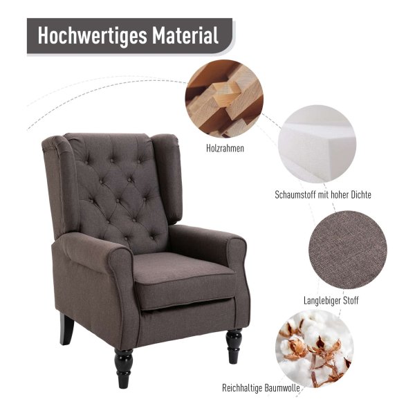 Fauteuil – Zaza Home Individual – Houten poten – Polyester – Bruin