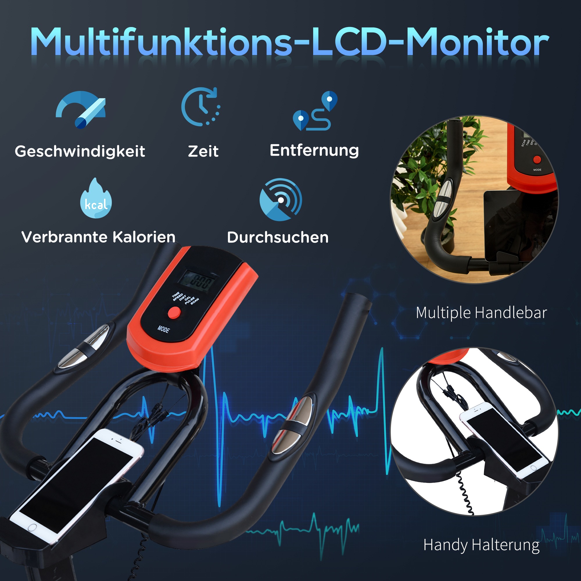Het digitale LCD-display toont alle belangrijke trainingsgegevens, zoals tijd, snelheid, afstand en calorieverbruik, zodat je jouw voortgang gemakkelijk kunt bijhouden en analyseren.