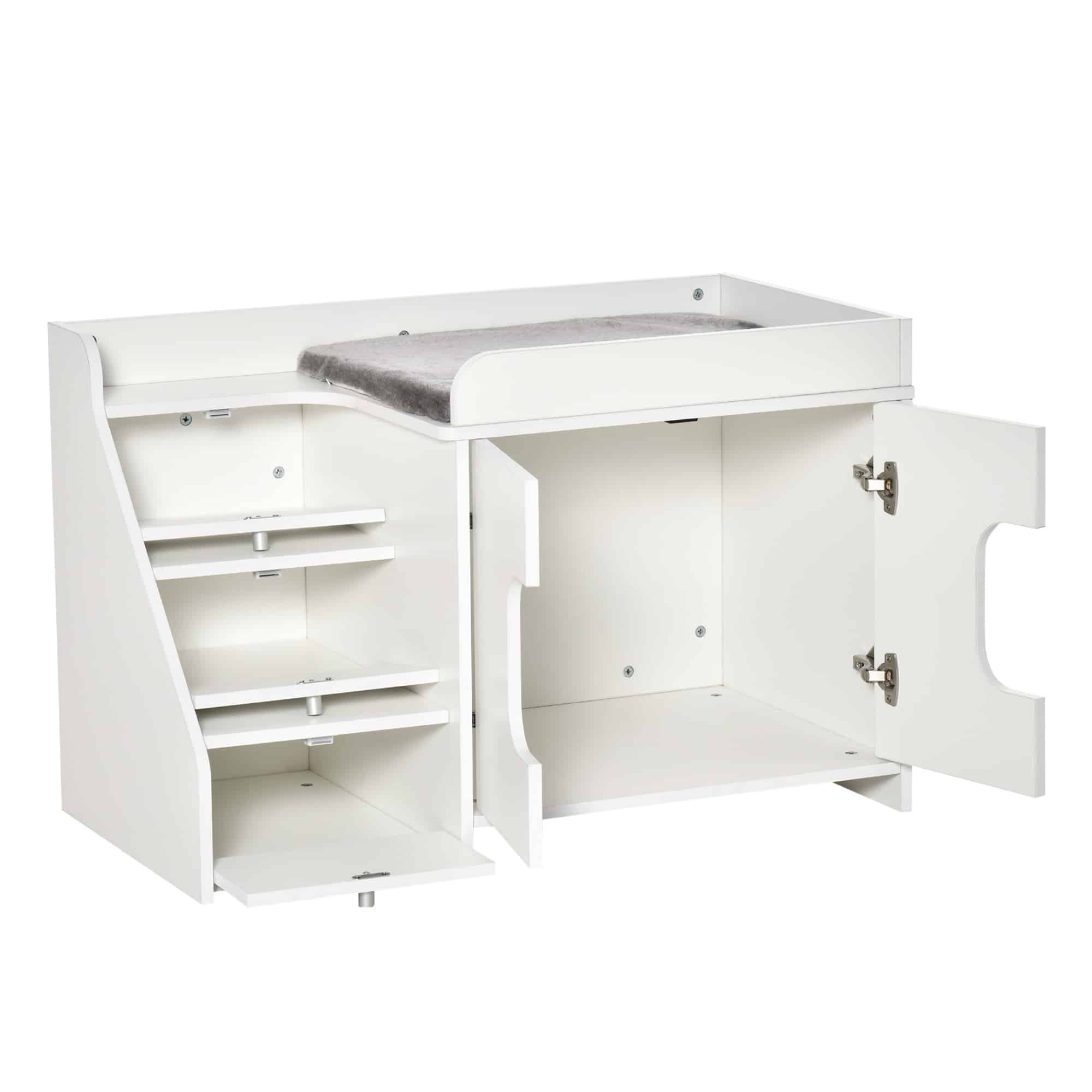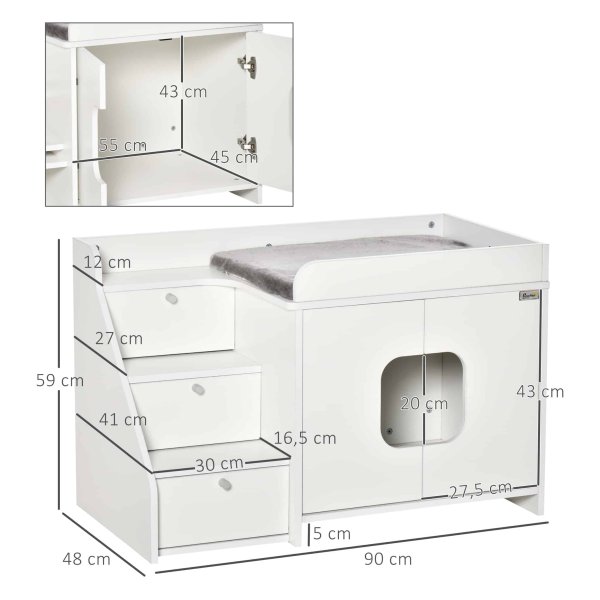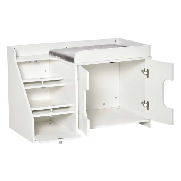 Dankzij het dubbele deurontwerp is dit kattenkastje eenvoudig en snel schoon te maken, waardoor u meer tijd kunt besteden aan het genieten van het gezelschap van uw kat in plaats van aan schoonmaken. Bovendien helpt de overdekte constructie van het kattenkastje om geuren te absorberen en te voorkomen dat ze zich verspreiden in uw huis.