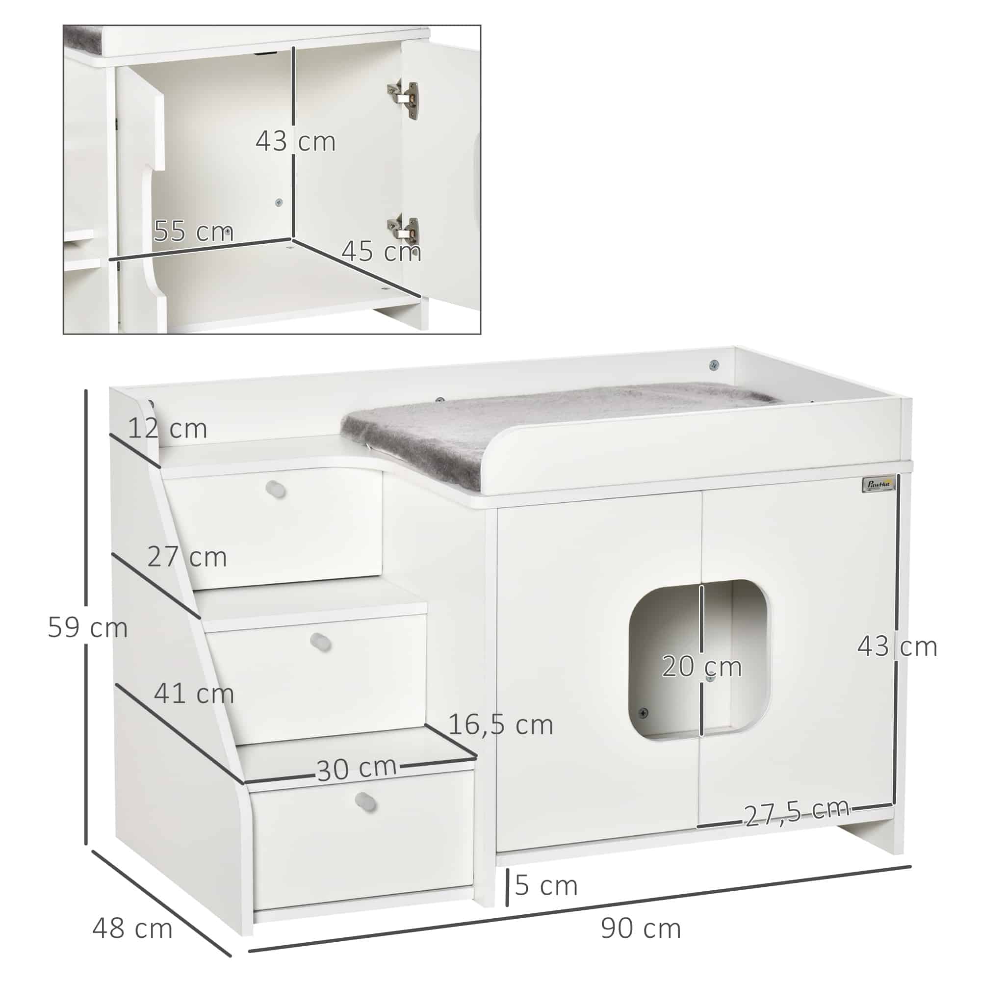 Kortom, het kattenhuisje gecombineerd met functionaliteit, design en comfort in één perfecte oplossing voor zowel uw kat als uzelf. Geef uw huisdier het beste met dit unieke kattenkastje en creëer een veilige en gezellige omgeving waar uw kat zich thuis voelt.