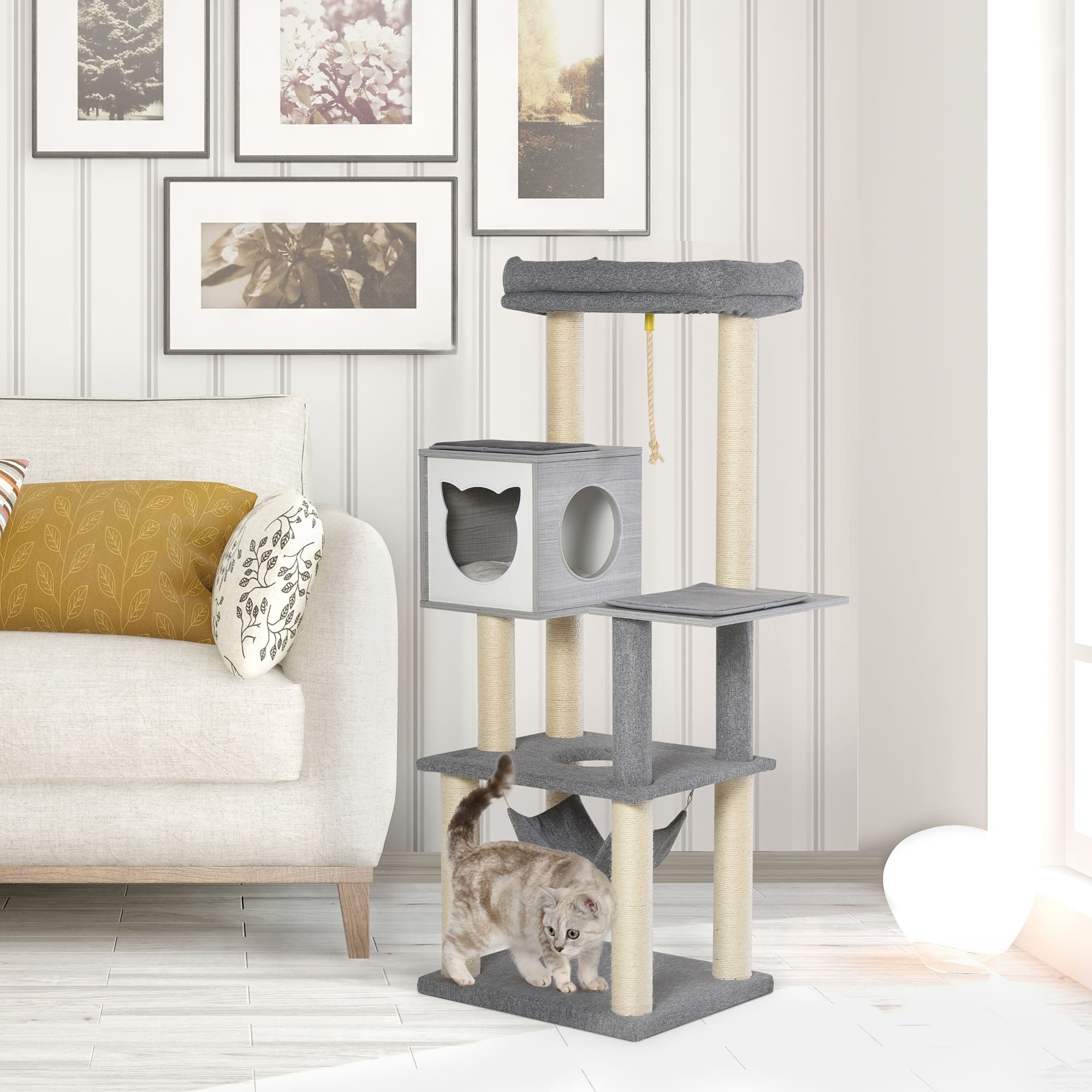 - Met een hangende staaf, een zacht en comfortabel condominium, een hangmat en potloodstaven biedt deze kattenklimpaal een scala aan activiteiten voor jouw kat.