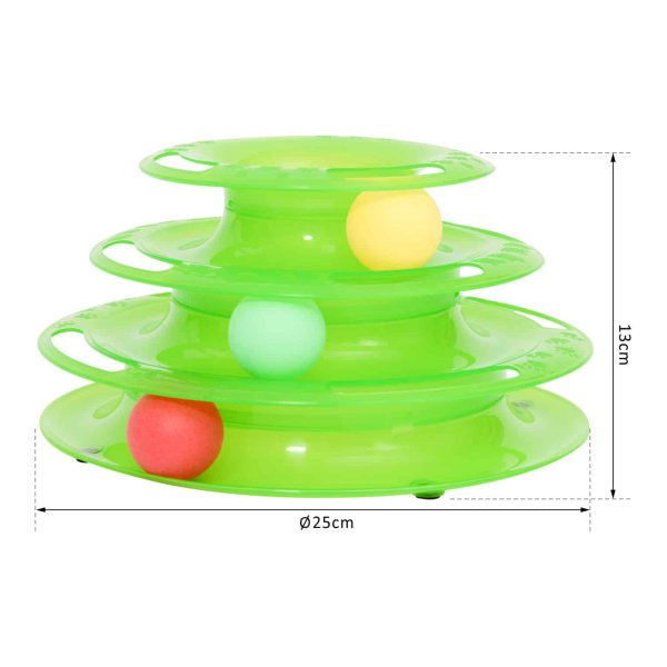 Bestel vandaag nog de Kattenspeelgoedtoren – KittyFun – Ronddraaiende balbaan – 3 ballen – Groen en geef je kat het ultieme speelplezier waar hij naar verlangt!