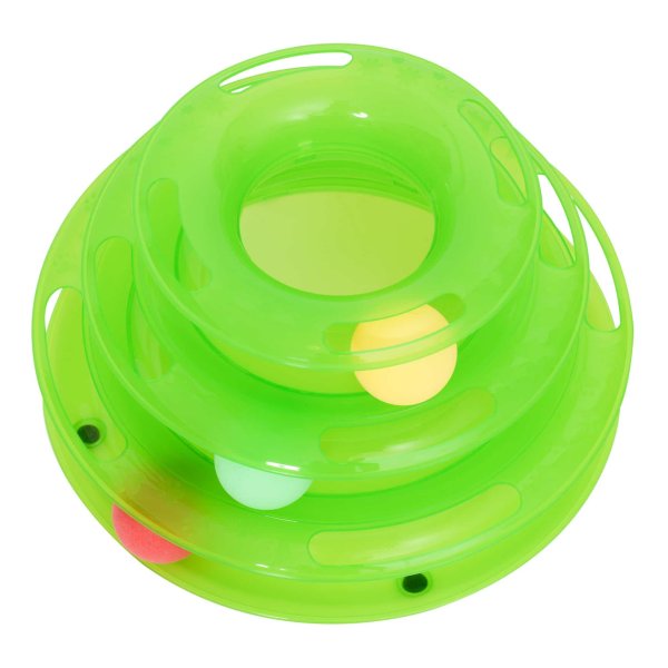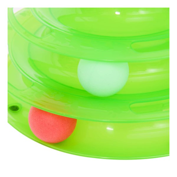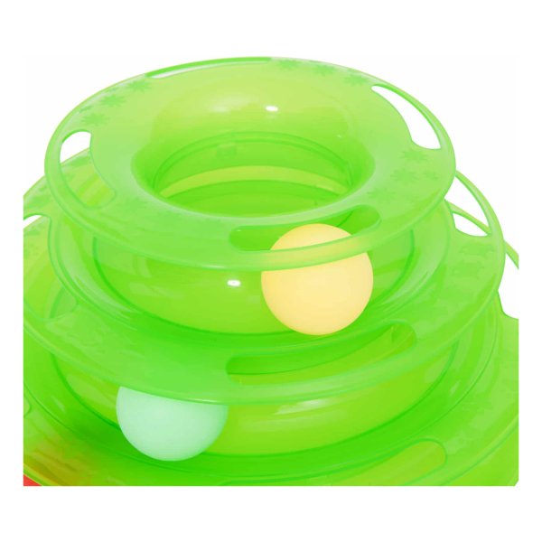 De Kattenspeelgoedtoren heeft drie verdiepingen met een ronddraaiende balbaan die perfect is voor het jagen en spelen van je kat. Hierdoor kan je kat zijn natuurlijke instincten volgen en actief bezig blijven. De drie kleurrijke ballen zorgen voor een extra uitdaging en stimuleren de aandacht van je kat.