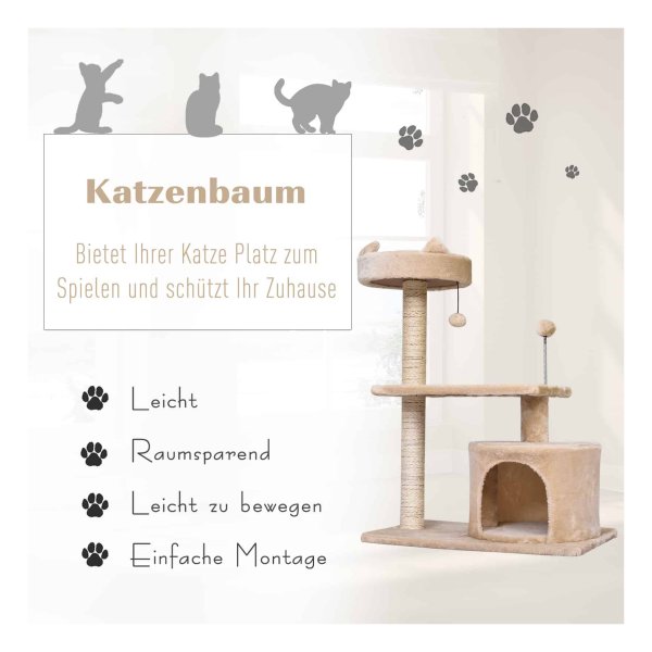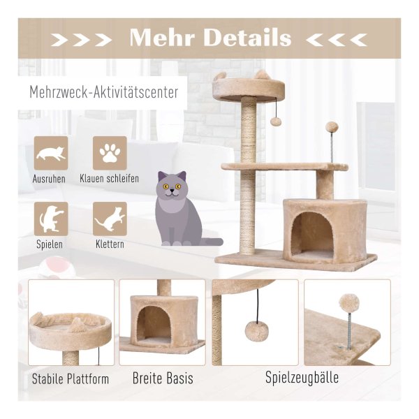 Het krabmeubel van HappyCat is uitgerust met speelse elementen, zoals hangende speelballen en een sisal scratch-post, die bijdragen aan het plezier en de tevredenheid van jouw kat. Hierdoor zal jouw kat zich nooit vervelen.