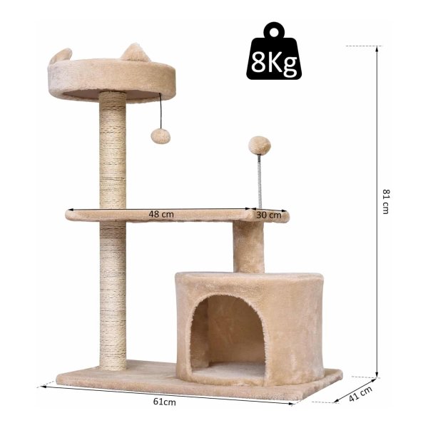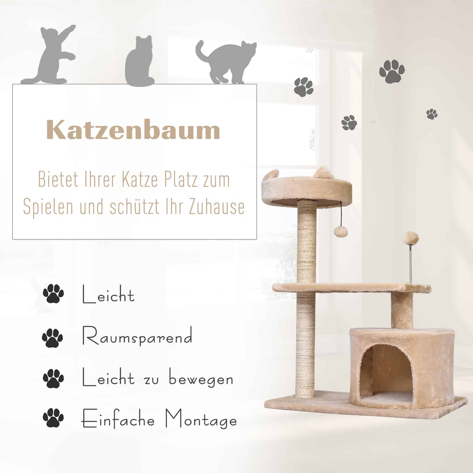 Krabmeubel – HappyCat – Drie krabpalen – Kattenhuisje – Beige