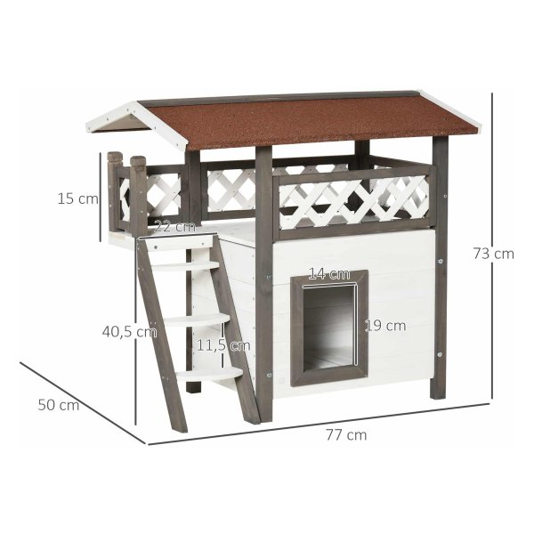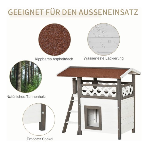 Het kattenhuis is vervaardigd uit massief FIR-hout, wat zorgt voor duurzaamheid en stabiliteit. Dit materiaal is perfect voor dagelijks gebruik en biedt een warme en gezellige omgeving voor jouw kat om te rusten en te spelen. Bovendien heeft het huis een verhoogd ontwerp, waardoor jouw kat beschermd is tegen koude en insecten, terwijl er tegelijkertijd voldoende ventilatie is.