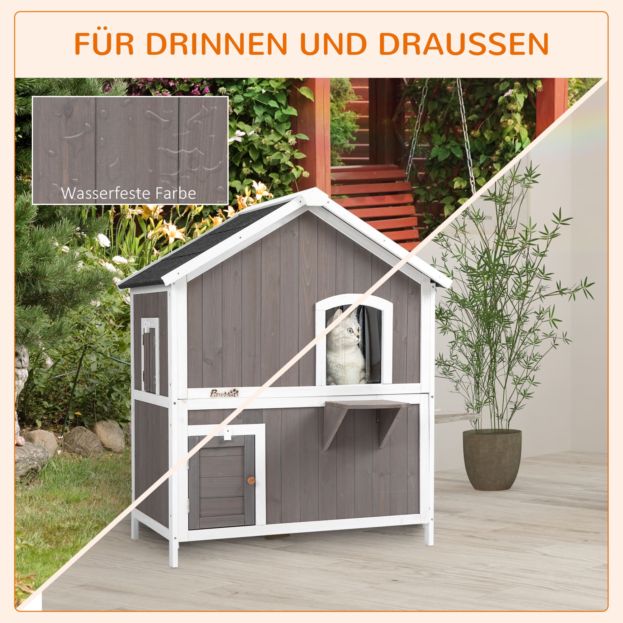 Kattenhuis – – Platform en twee niveaus – Grijs