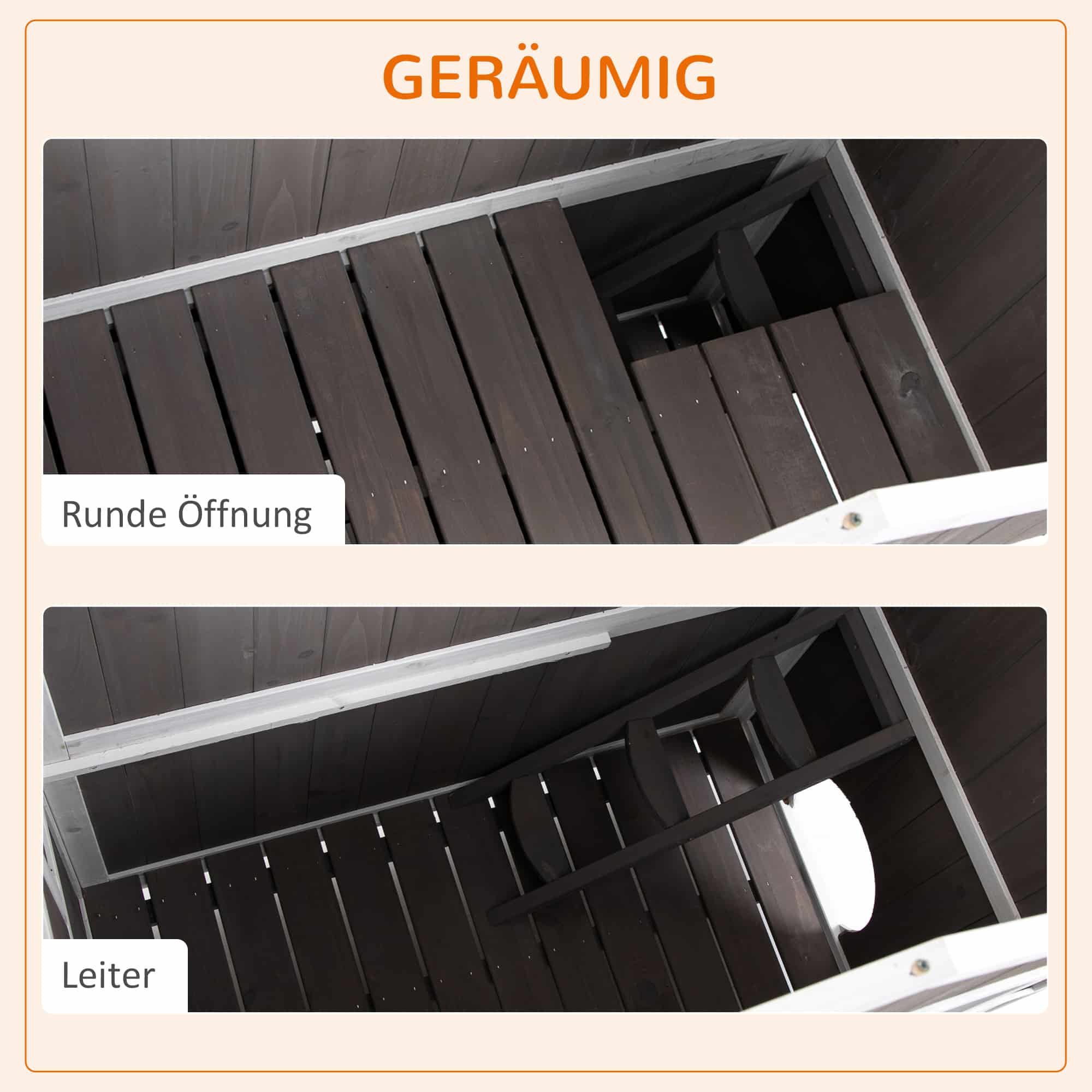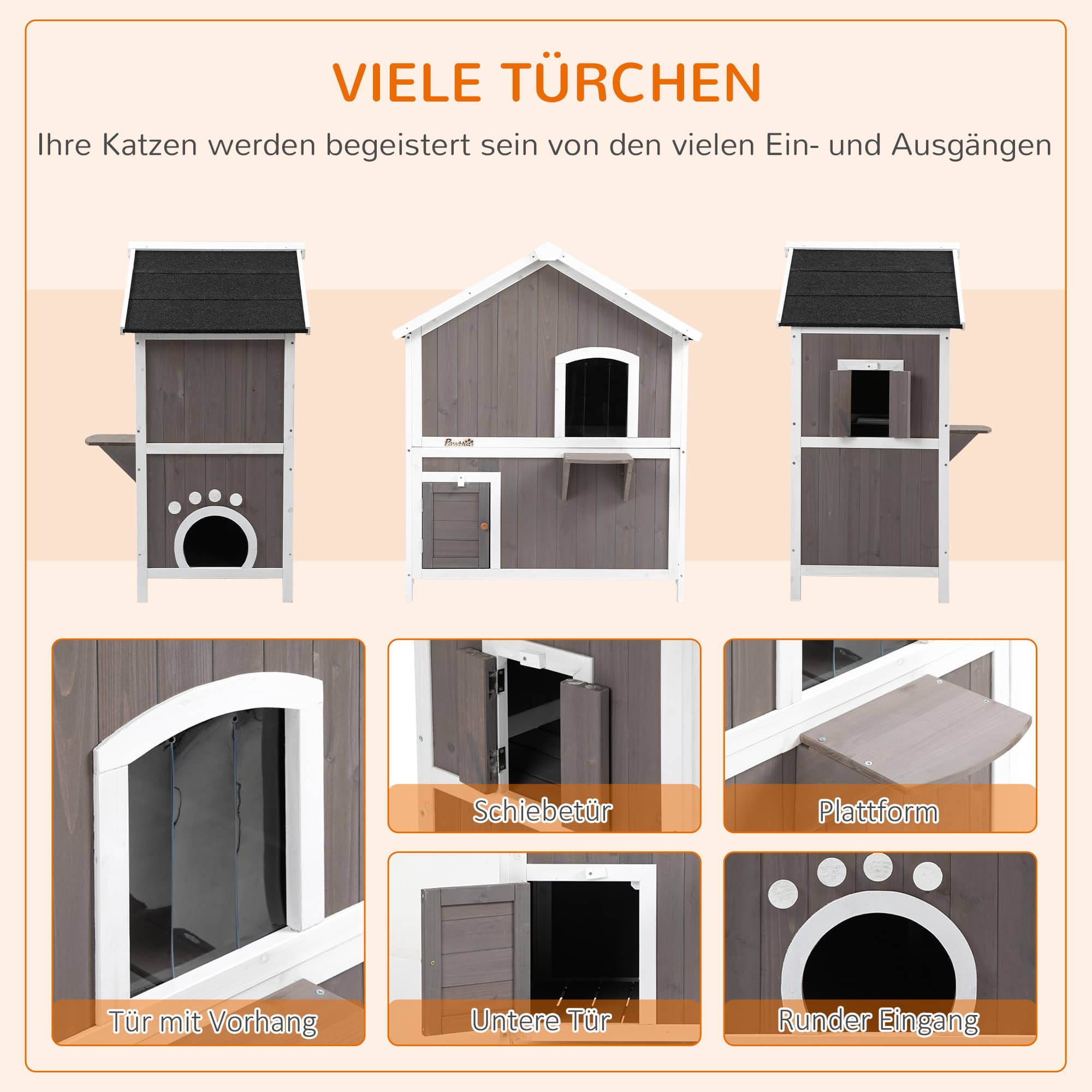 Met verschillende ingangen, waaronder een opening, een schuifraam, en een vloerdeur, biedt dit kattenhuis ultiem comfort en gemak voor uw huisdier. Het is ideaal voor katten en kleine honden, waardoor ze kunnen genieten van hun eigen ruimte met privacy.