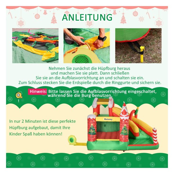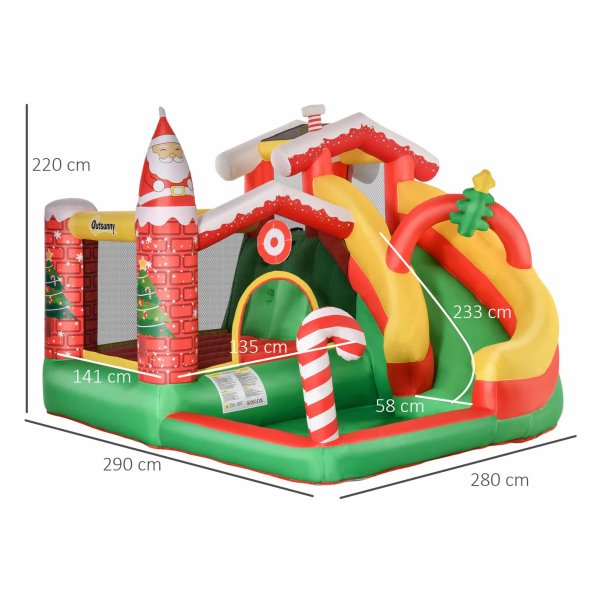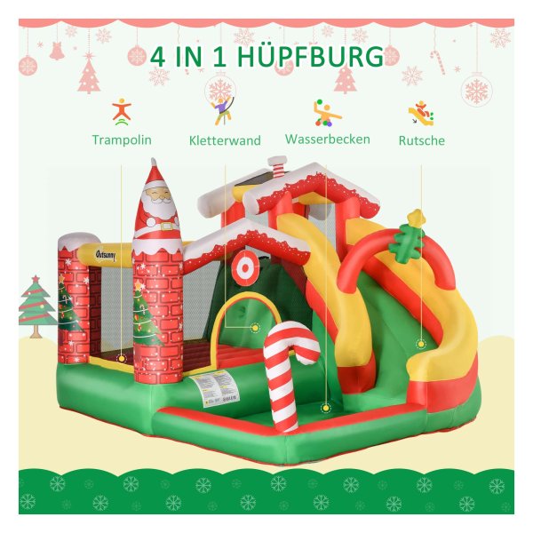 Dit opblaasbaar springkussen met kerstthema is het perfecte cadeau voor je kinderen. Breng het plezier naar huis en laat je kinderen de tijd van hun leven hebben terwijl ze spelen en plezier maken in dit feestelijke kussen.
