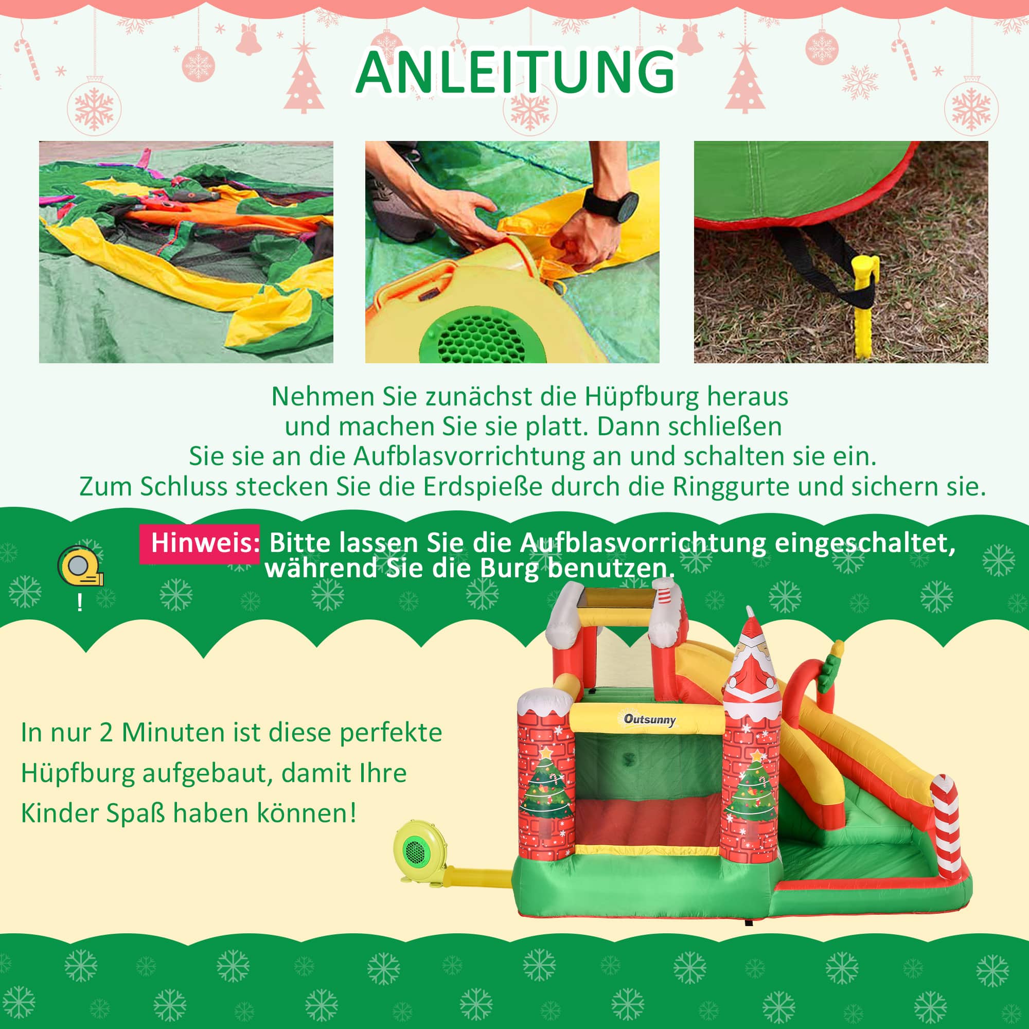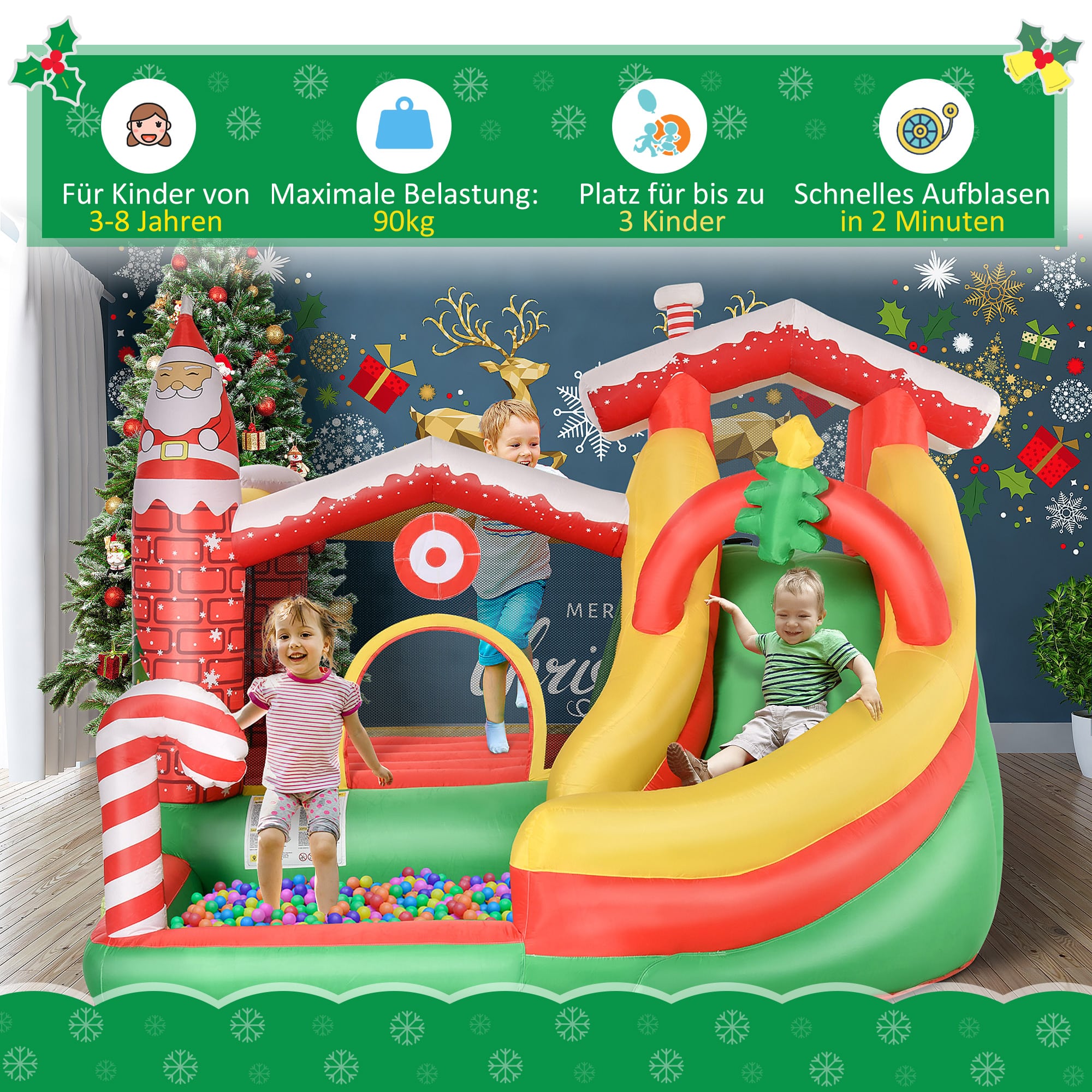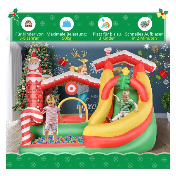 Opblaasbaar Springkussen – Kerst Pret – Geschikt Voor 3 Kinderen – Feestelijk Rood