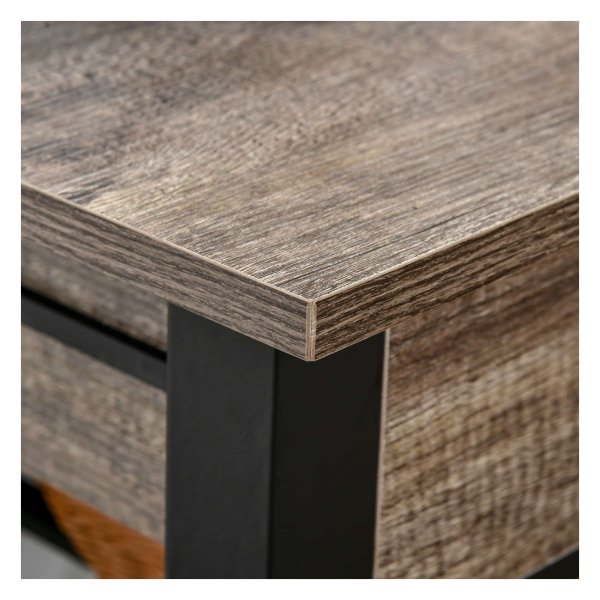 De keukenwagen is vervaardigd uit hoogwaardig spaanplaat en metaal, wat zorgt voor een robuuste en duurzame constructie. Daarnaast is het materiaal eenvoudig schoon te maken, waardoor de onderhoudsinspanning minimaal is.