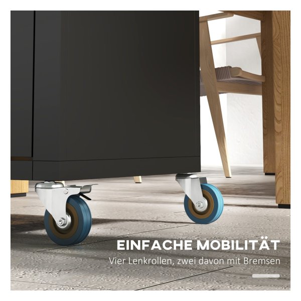 Deze multifunctionele keukentrolley is een waardevolle toevoeging aan elke keuken. Met zijn stijlvolle zwarte ontwerp en handige functies, maakt deze trolley het bereiden van maaltijden gemakkelijker en georganiseerder dan ooit tevoren.