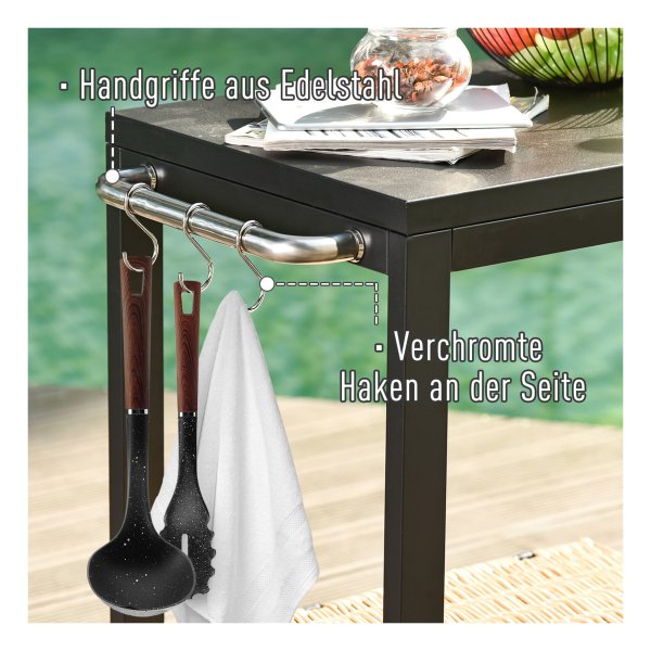 Handgrepen – Stijlvolle keukentrolley – Serveerwagen – Roestvrijstalen – Zwart
