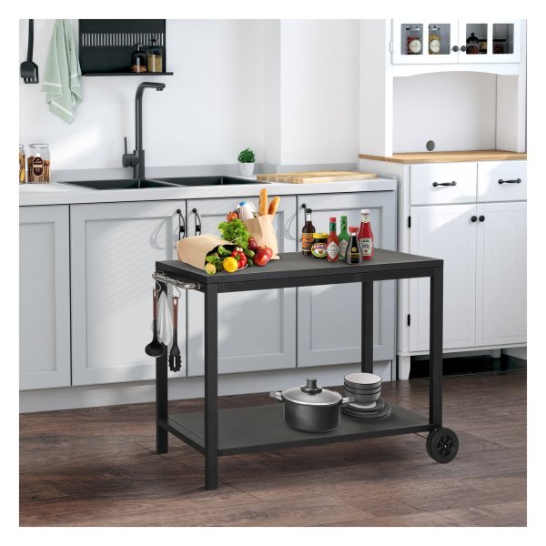 Met deze stijlvolle keukentrolley voegt u niet alleen een handige serveerwagen toe aan uw keuken, maar ook een stijlvolle en functionele accessoire die perfect is voor het organiseren van uw keukengerei en het serveren van maaltijden. Bestel vandaag nog en ervaar het gemak van deze stijlvolle keukentrolley.