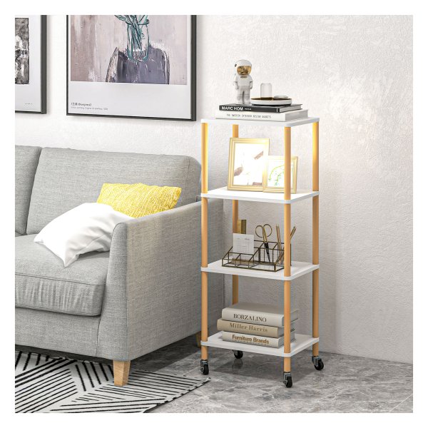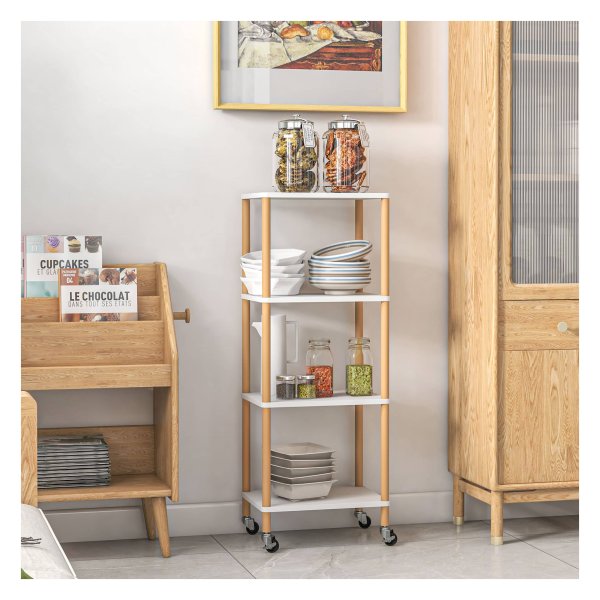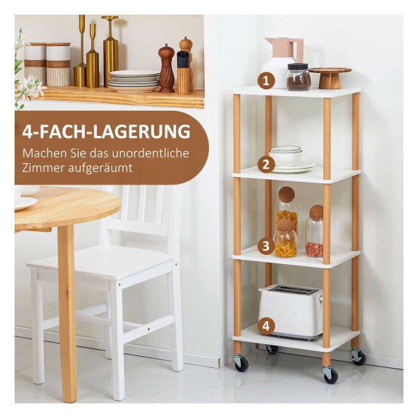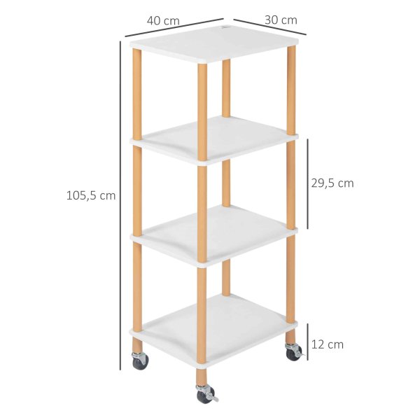 - De trolley beschikt over vier ruime planken die voldoende ruimte bieden voor servies, glazen, etenswaren en andere benodigdheden.