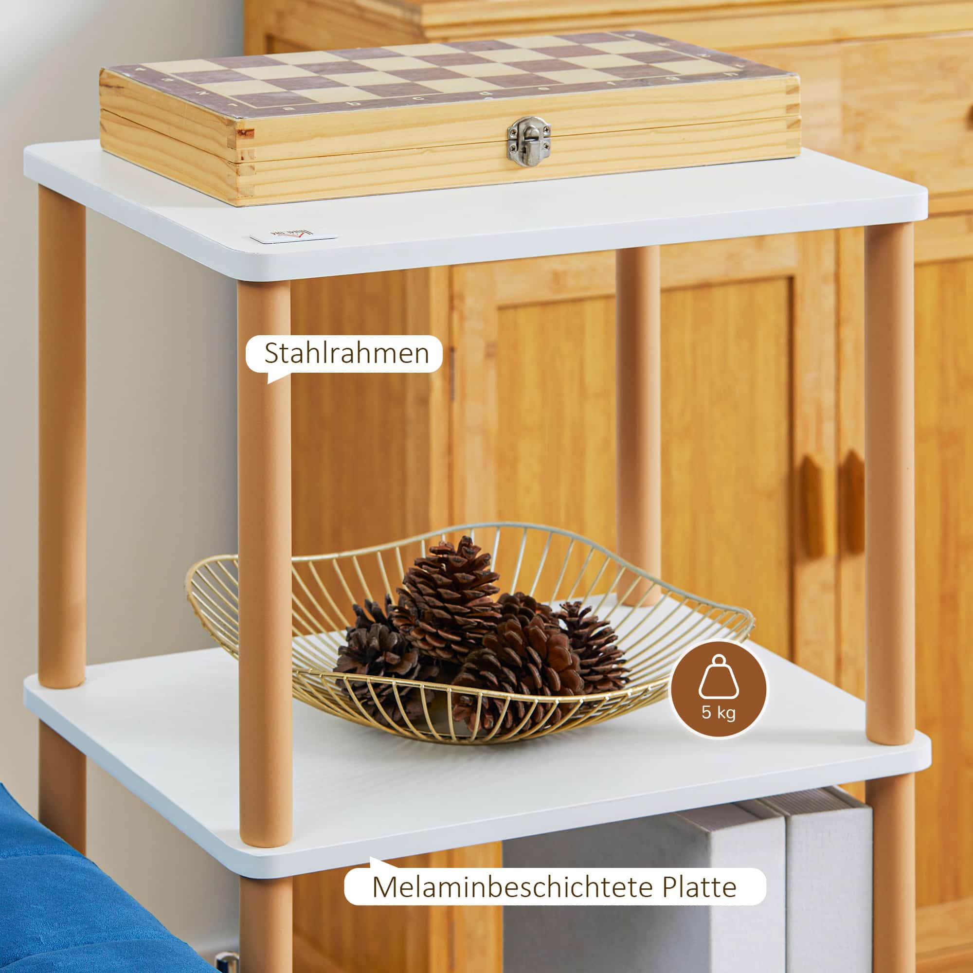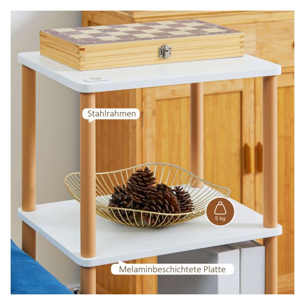 - De melamine-coating op de planken maakt ze eenvoudig te reinigen en te onderhouden, waardoor de trolley langdurig mooi blijft.