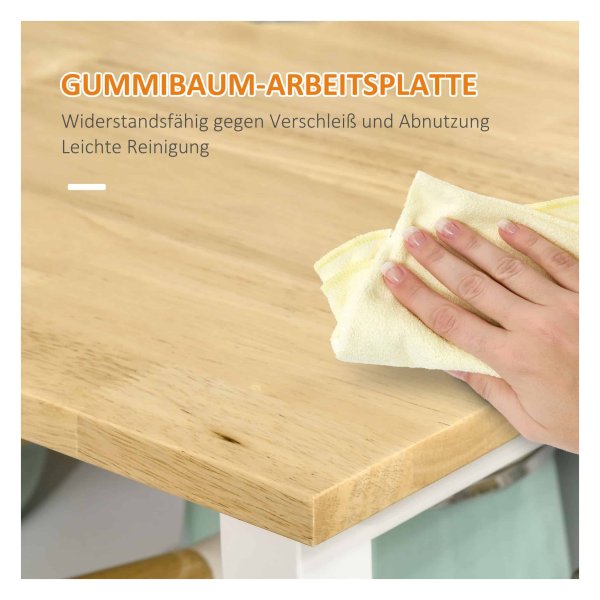 De verrijdbaarheid van dit keukeneiland zorgt voor flexibiliteit in uw keukenruimte. U kunt het eiland gemakkelijk verplaatsen en aanpassen aan uw behoeften, waardoor u optimaal gebruik kunt maken van uw kleine keukenruimte. Daarnaast is het eiland gemakkelijk schoon te maken en te onderhouden, waardoor het een praktische en duurzame keuze is voor uw keuken.