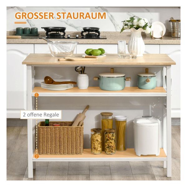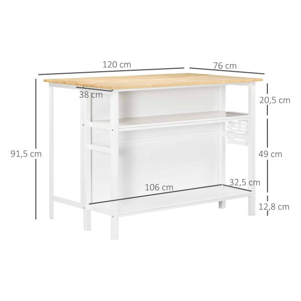 Met afmetingen van 120L x 76B x 91.5H CM biedt dit keukeneiland voldoende werkruimte en opbergruimte voor al uw kookbehoeften. Of u nu een snelle maaltijd wilt bereiden of een uitgebreid diner wilt koken, dit eiland maakt het allemaal mogelijk.