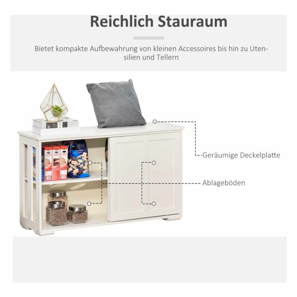 Bijzetkast – Homely – Schuifdeuren – Verstelbare planken – Wit