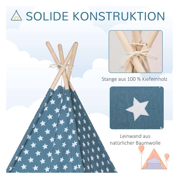 De Avontuurlijke Tipi Speeltent in het blauw is de ideale speelplek voor jouw kind en zijn vriendjes. Deze tent biedt een veilige en comfortabele ruimte om te spelen, te rusten en avonturen te beleven. Gemaakt van hoogwaardig canvas en ondersteund door stevige steunen van natuurlijk grenenhout, is deze speeltent ideaal voor zowel binnen als buiten gebruik.