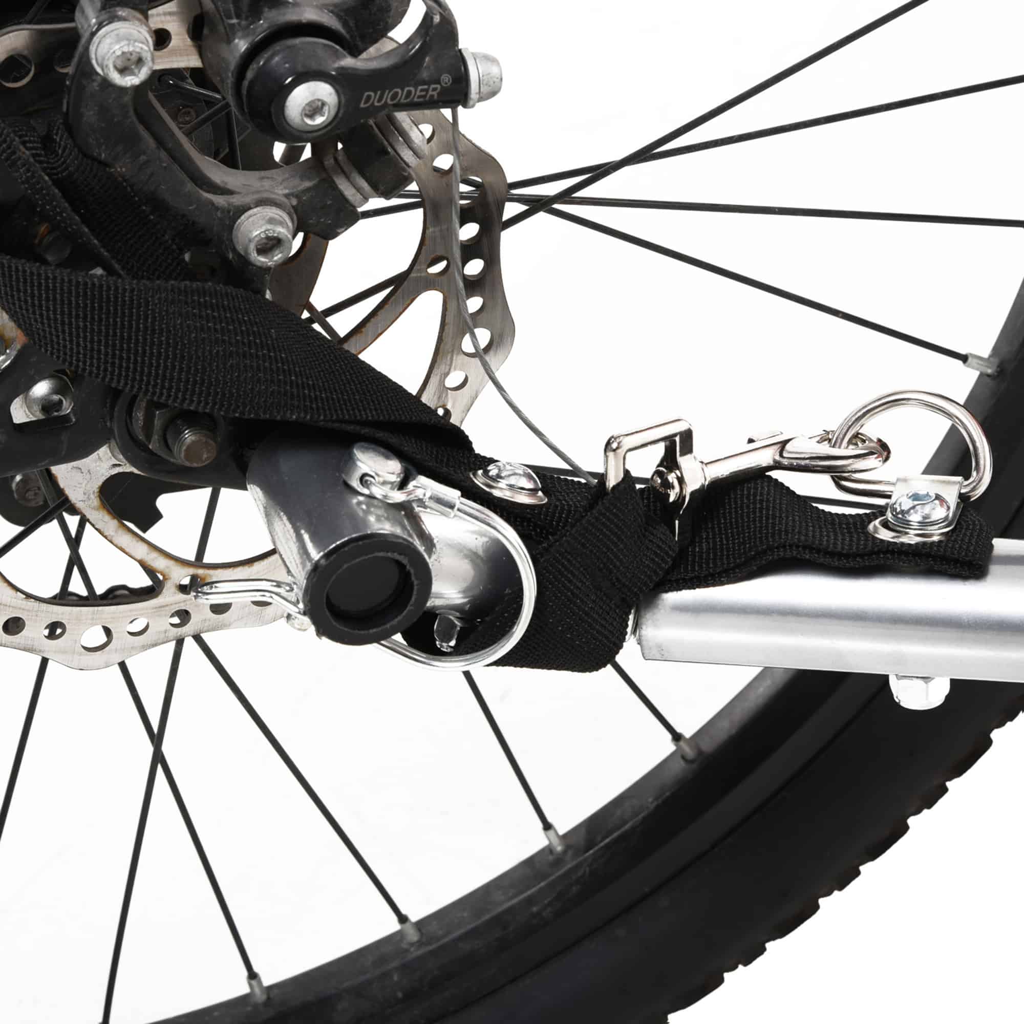 Dankzij de luchtgevulde banden en de volledig geveerde achteras biedt deze fietskar een comfortabele en veilige rit, zelfs op ruwer terrein. Je kunt dus met een gerust hart op avontuur gaan met je kinderen, wetende dat ze veilig en comfortabel zitten in de fietskar.