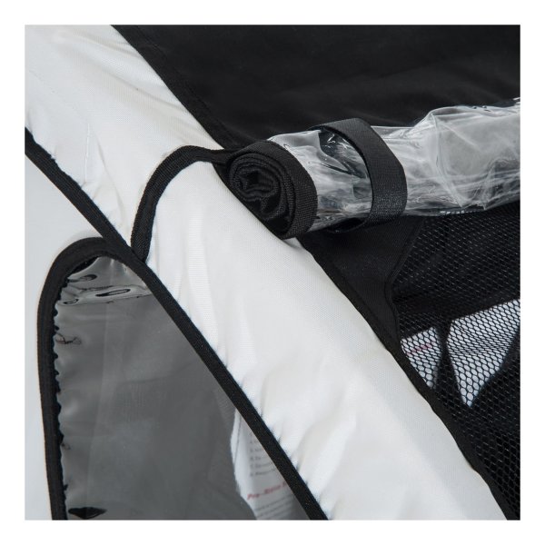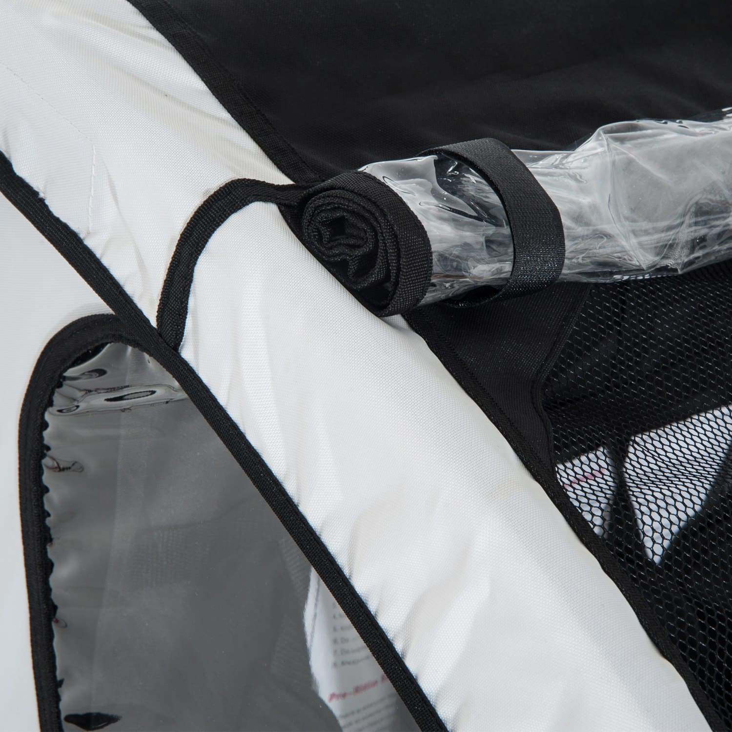 Met de beschermende, oprolbare hoes en klamboe worden je kinderen beschermd tegen regen en vervelende insecten tijdens de rit. Daarnaast zorgen de twee vijfpuntsgordels aan de binnenkant voor extra veiligheid.