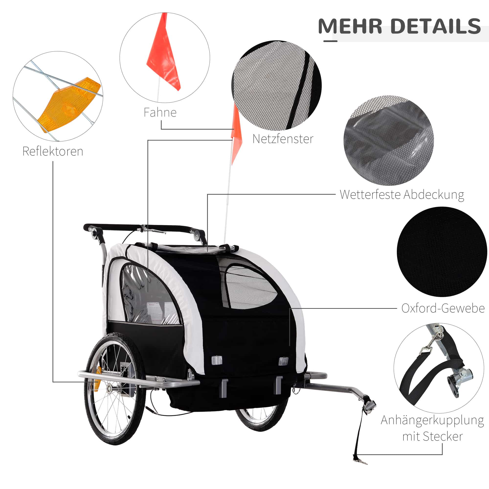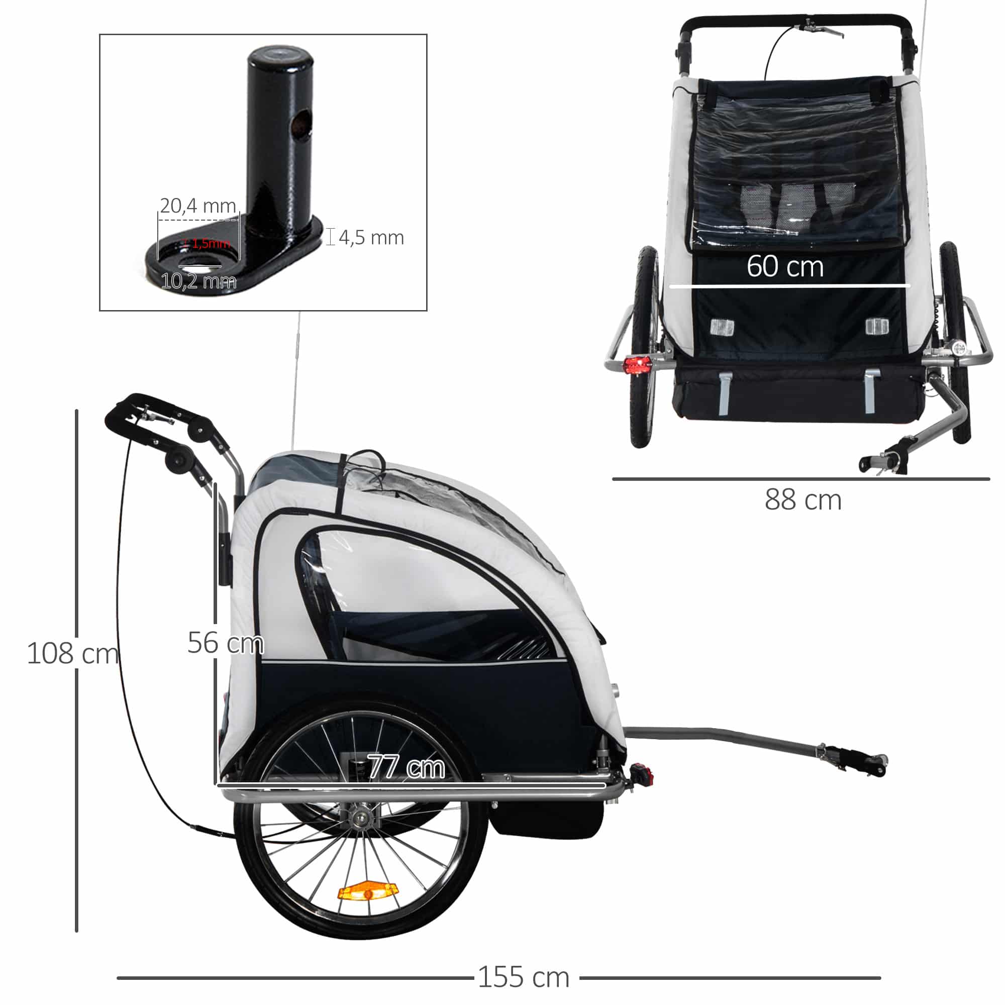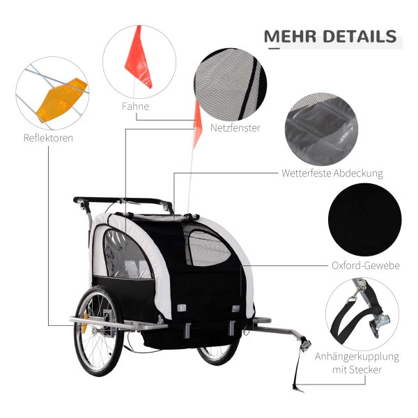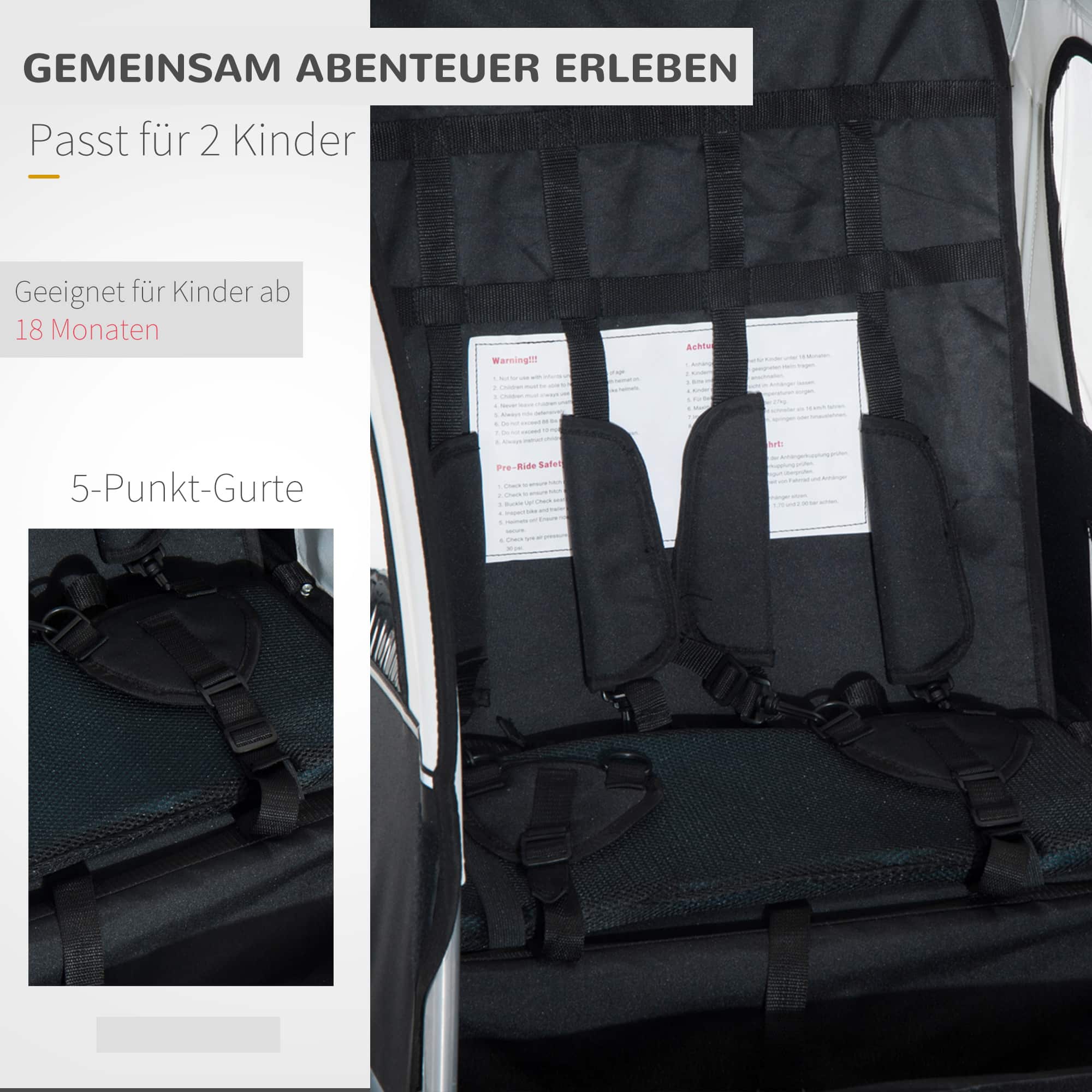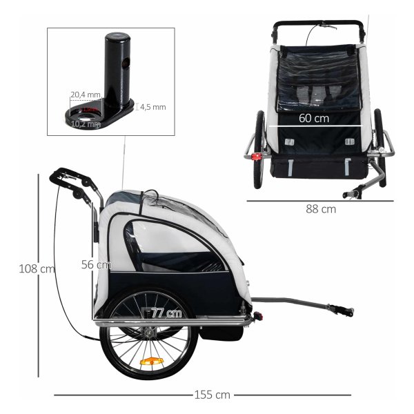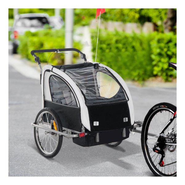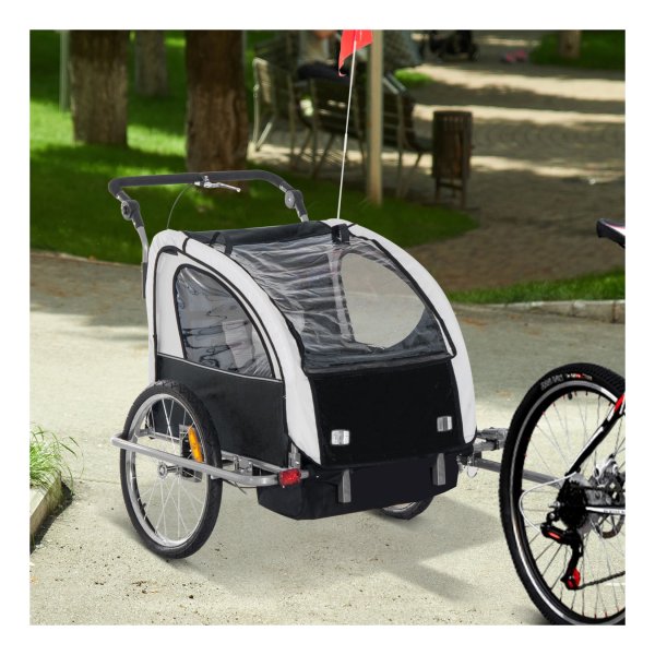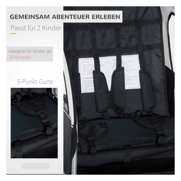 Deze robuuste kinderfietskar is ideaal voor fietstochten, wandelingen of de weg naar de kleuterschool. De aanhanger is geschikt voor maximaal 2 kinderen en is perfect voor kinderen ouder dan 18 maanden en niet groter dan 1,10 m.