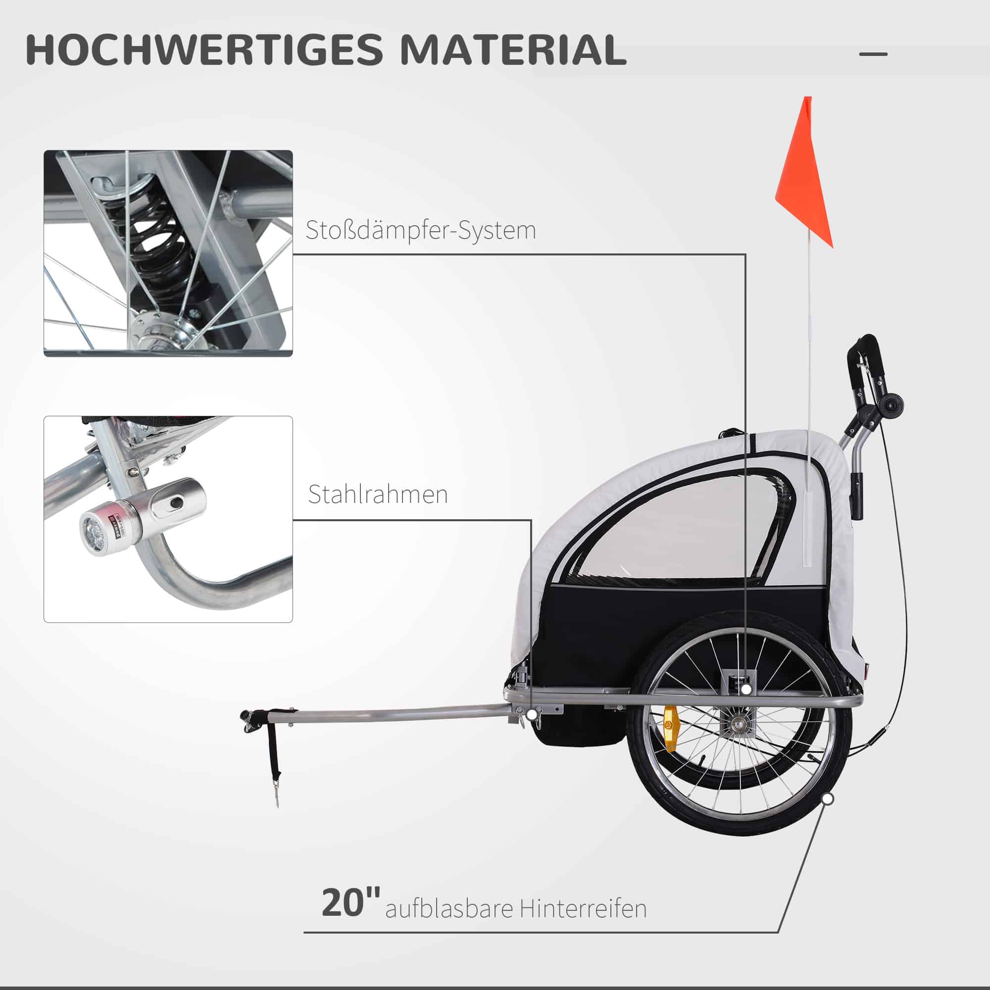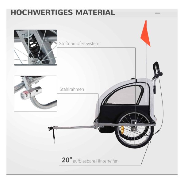 Dankzij de luchtgevulde banden en de volledig geveerde achteras van de kinderfietskar, kunnen je kinderen veilig en comfortabel naar hun bestemming worden gebracht, zelfs op hobbelige wegen.