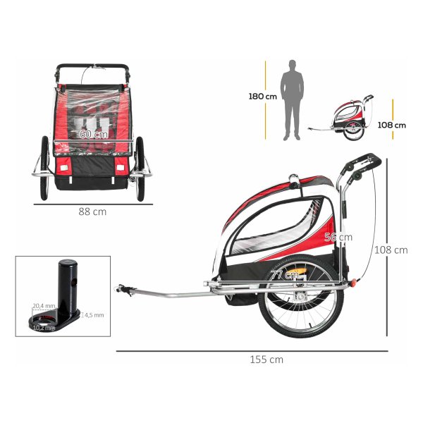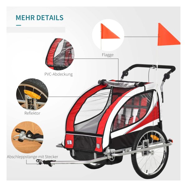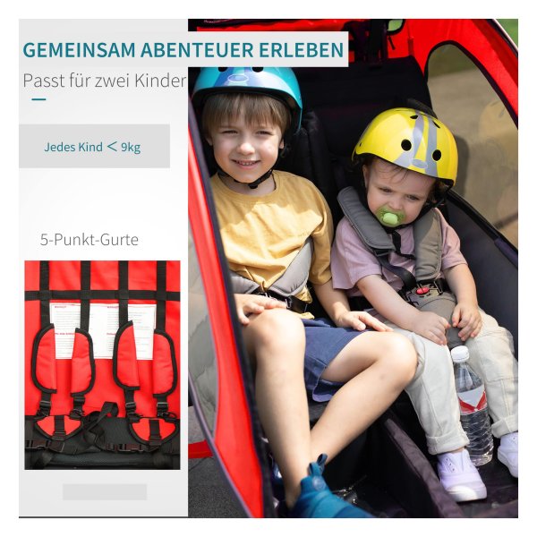 Deze robuuste kinderaanhanger is ideaal voor fietstochten, wandelingen of de weg naar de kleuterschool. De aanhanger is geschikt voor maximaal 2 kinderen en is geschikt voor kinderen tot 18 kg. De universele trekhaak maakt het eenvoudig om de aanhanger aan bijna elke fiets te bevestigen.