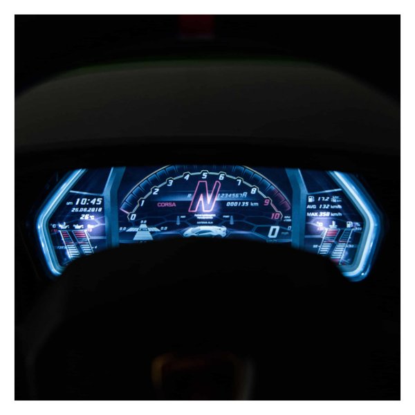 - LED voor- en achterlichten, een verlicht dashboard en het realistische stuur maken het pakket compleet.