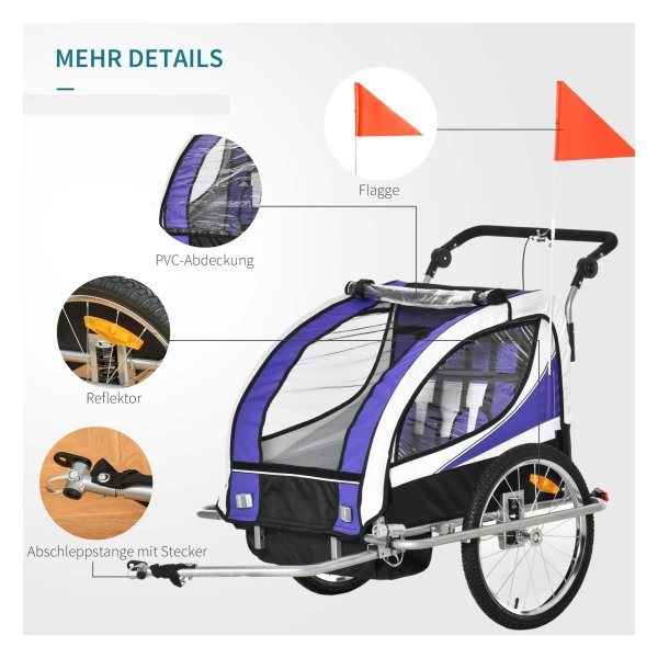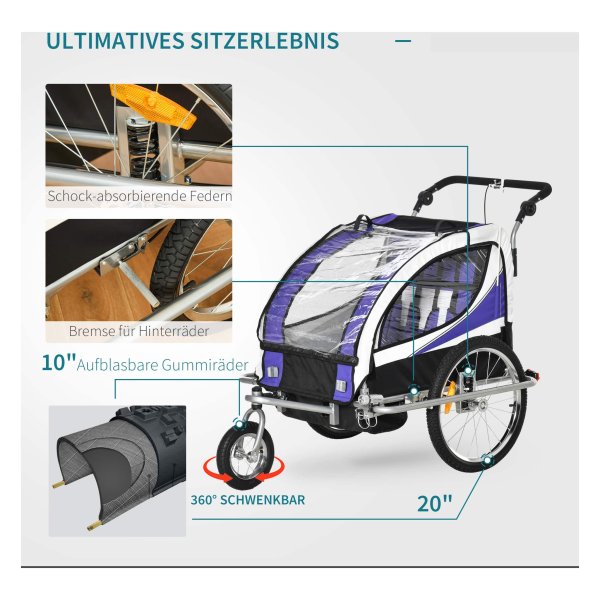 Met de Fietskar SportyBike ben je verzekerd van een veilige rit. Dankzij de reflectoren aan de zijkanten van de fietskar ben je goed zichtbaar in het verkeer. Daarnaast zorgen de luchtbanden voor een comfortabele rit, zelfs op oneffen terrein.