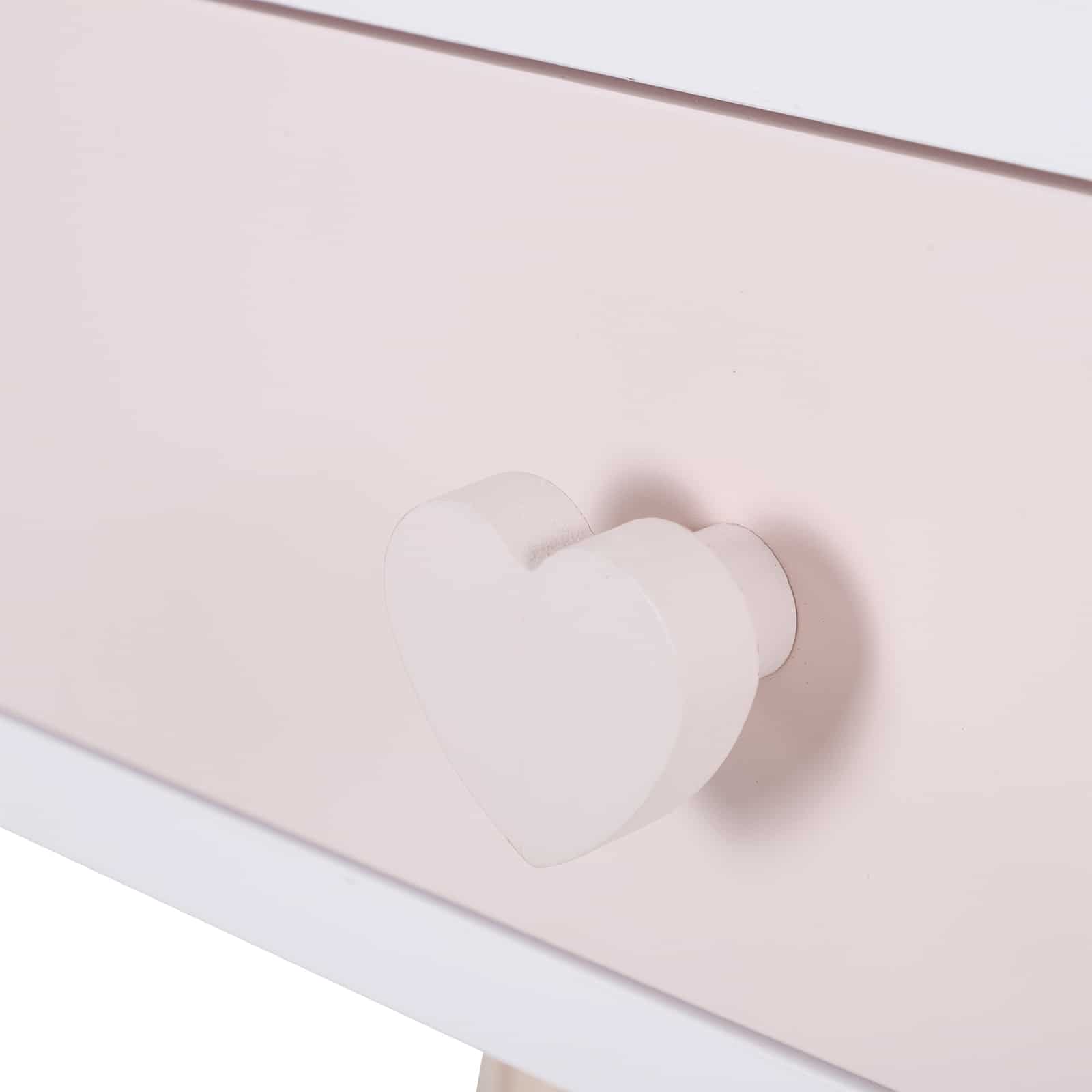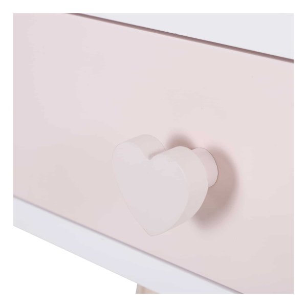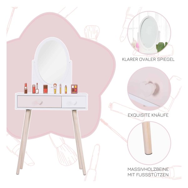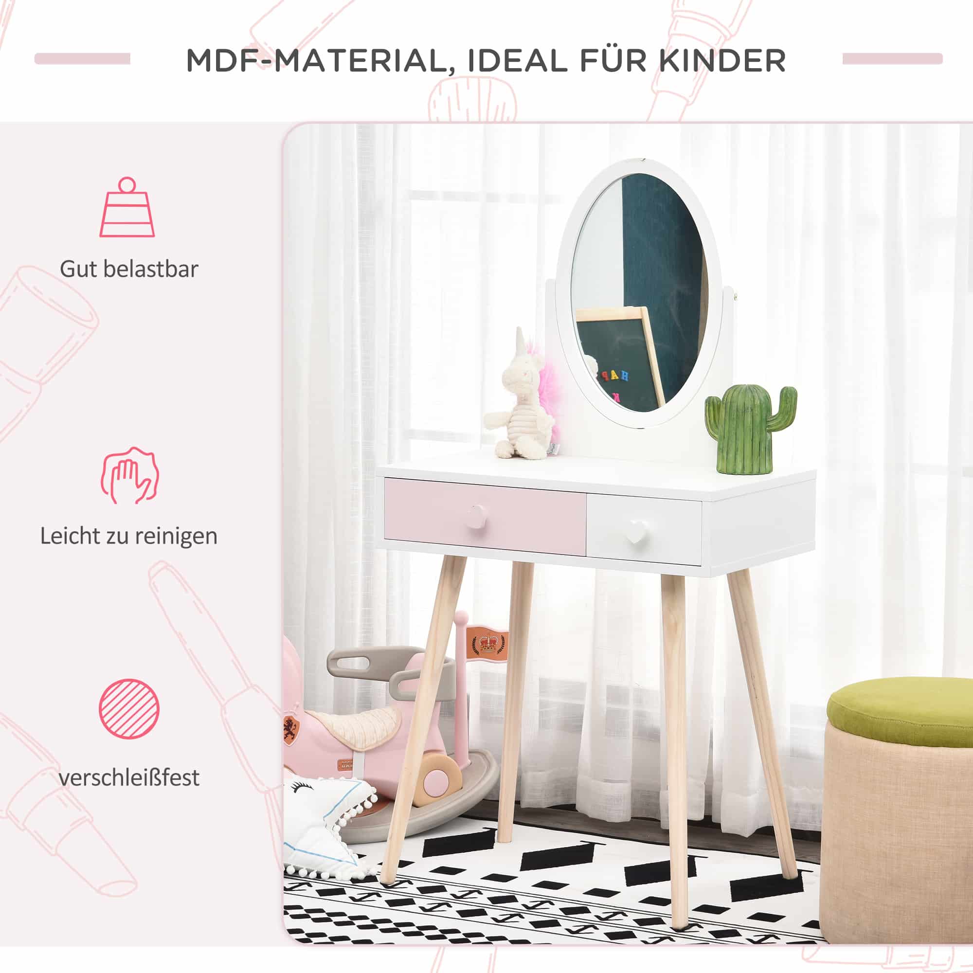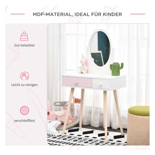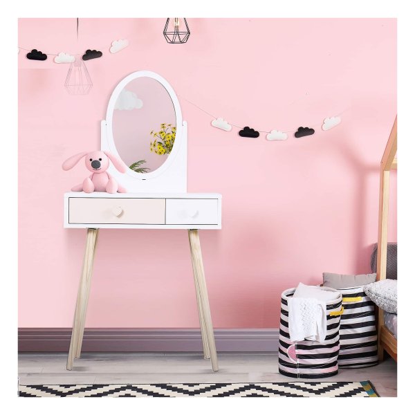 Het speelse design van deze kinderkaptafel met schattige kleuren en leuke handvatten trekt ongetwijfeld de aandacht van je kinderen. De ingebouwde spiegel en de twee lades bieden voldoende opbergruimte voor make-up, haarelastiekjes en andere accessoires. Zo kunnen je kinderen zich helemaal onderdompelen in hun eigen beauty-avonturen.