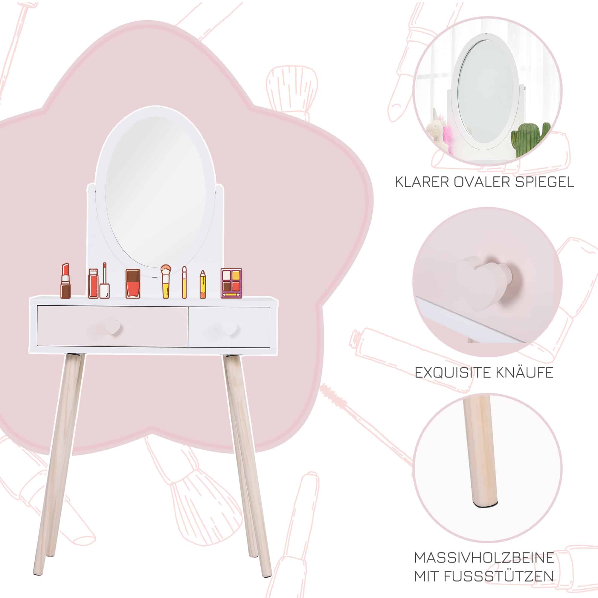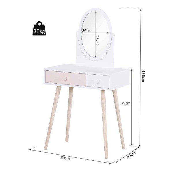 - De afmetingen van deze kinderkaptafel zijn 69 L x 49 B x 136 H cm, wat zorgt voor voldoende ruimte om lekker te kunnen spelen en zichzelf mooi te maken.