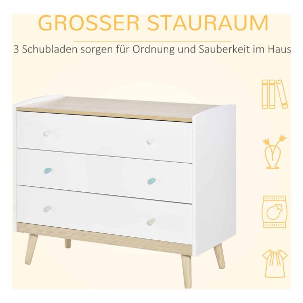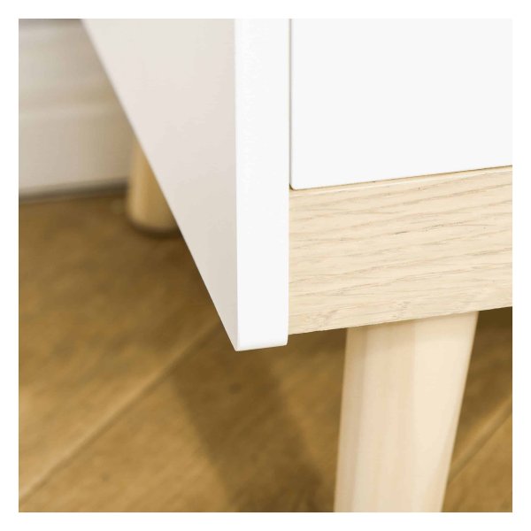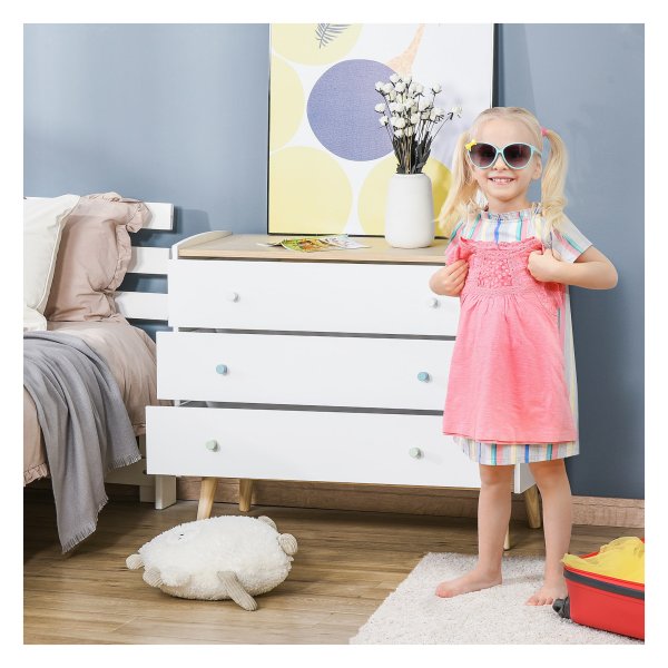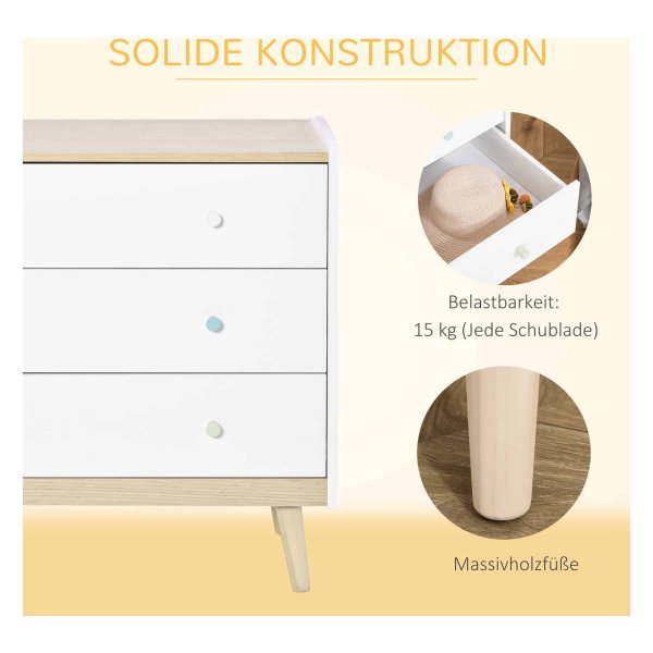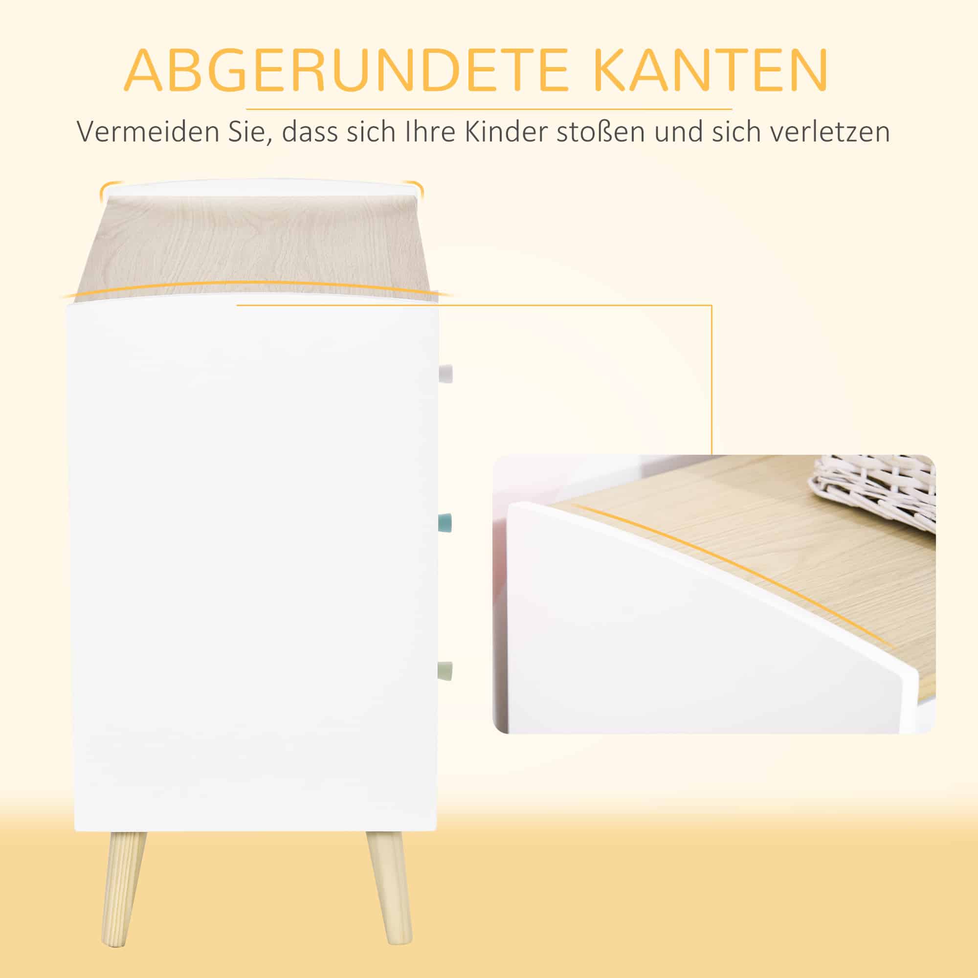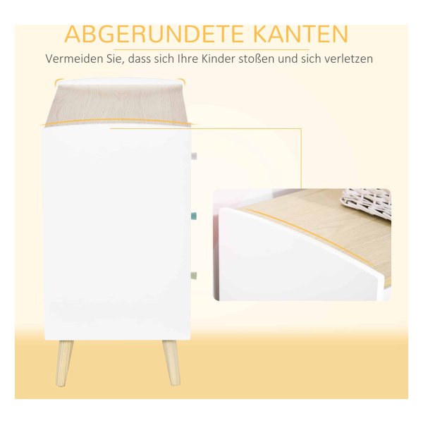 De kast is ontworpen met de veiligheid van kinderen in gedachten. De anti-kantelvoorziening zorgt ervoor dat de kast stevig op zijn plek blijft staan, zelfs als er aan getrokken wordt. Daarnaast zijn de randen soepel afgerond om verwondingen te voorkomen.