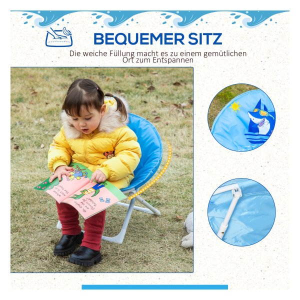 Kindermaanstoel – Opvouwbaar – Geschikt voor binnen en buiten – Staalblauw
