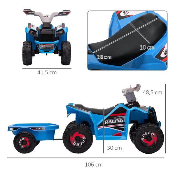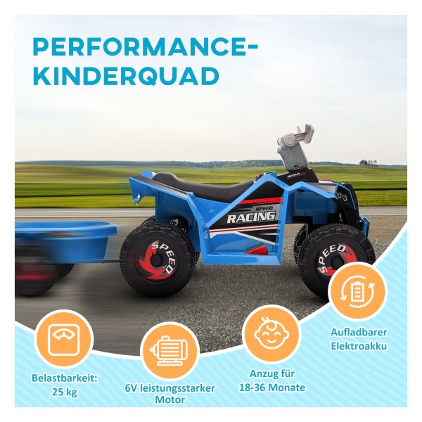 Ben je op zoek naar urenlang speelplezier voor je kinderen? Dan is de Quadtoy -de perfecte keuze! Deze elektrische quad met aanhangwagen in het blauw is niet alleen veilig, maar ook ontzettend leuk voor de kleintjes.