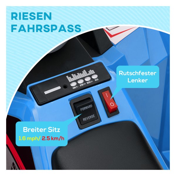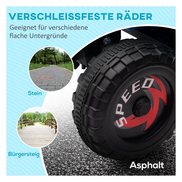 Dankzij de profeciatie, omgekeerde versnelling en het pedaal kunnen kinderen een realistische rijervaring beleven. De comfortabele, brede stoel zorgt ervoor dat ze comfortabel kunnen rijden, terwijl de Deckey-resistente banden zorgen voor grip op verschillende ondergronden.