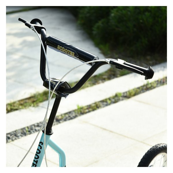 De kinderstep is uitgerust met opblaasbare luchtbanden die zorgen voor een comfortabele en stabiele rit. Deze banden zijn slijtvast en bieden uitstekende grip op verschillende soorten terrein, waardoor kinderen veilig kunnen rijden en manoeuvreren.