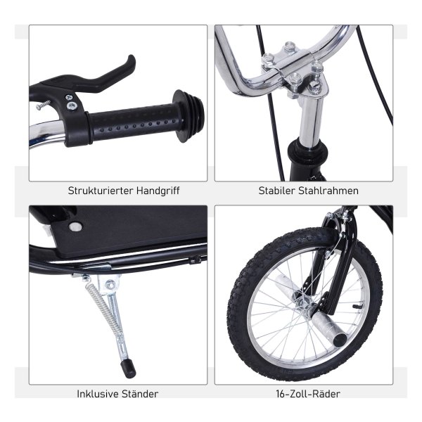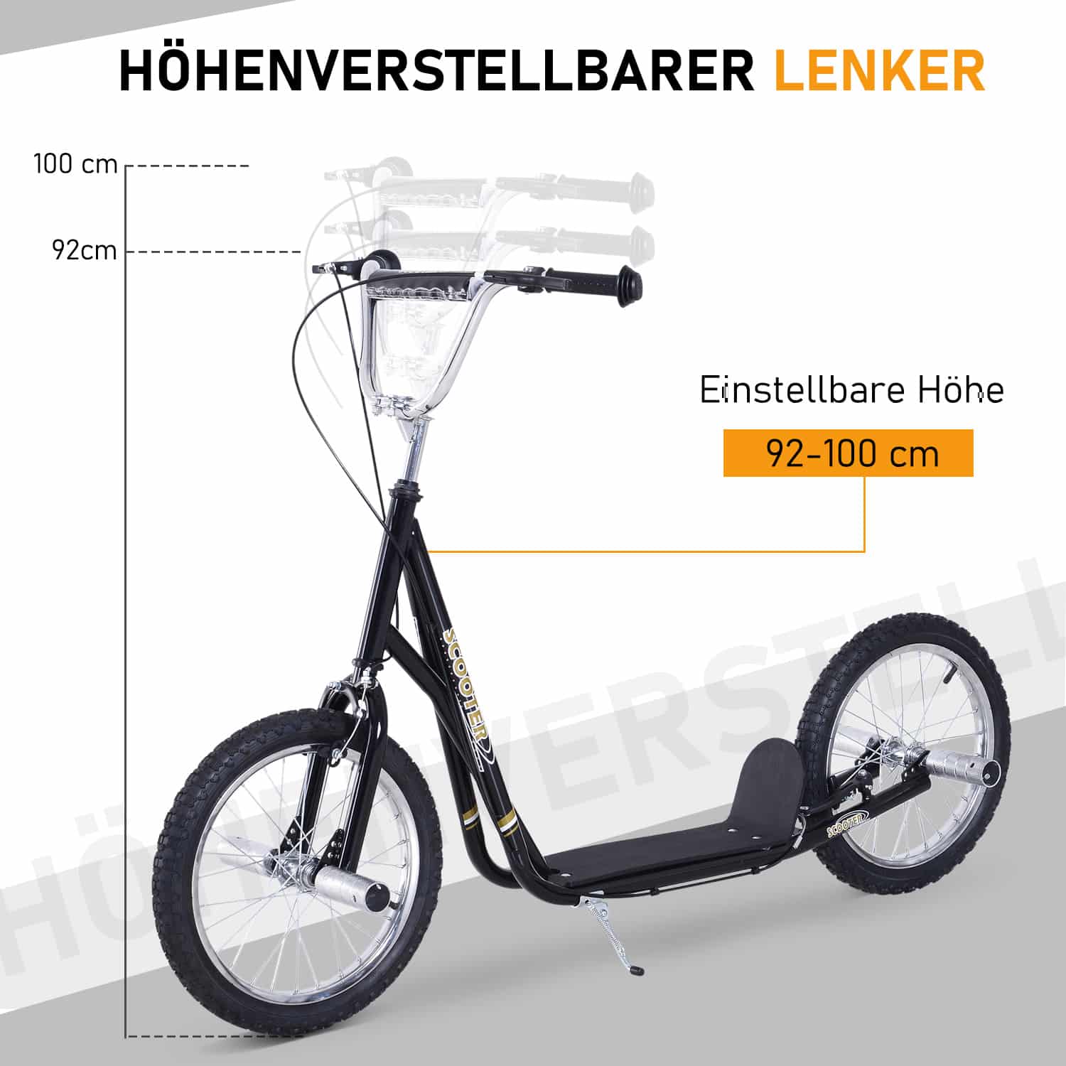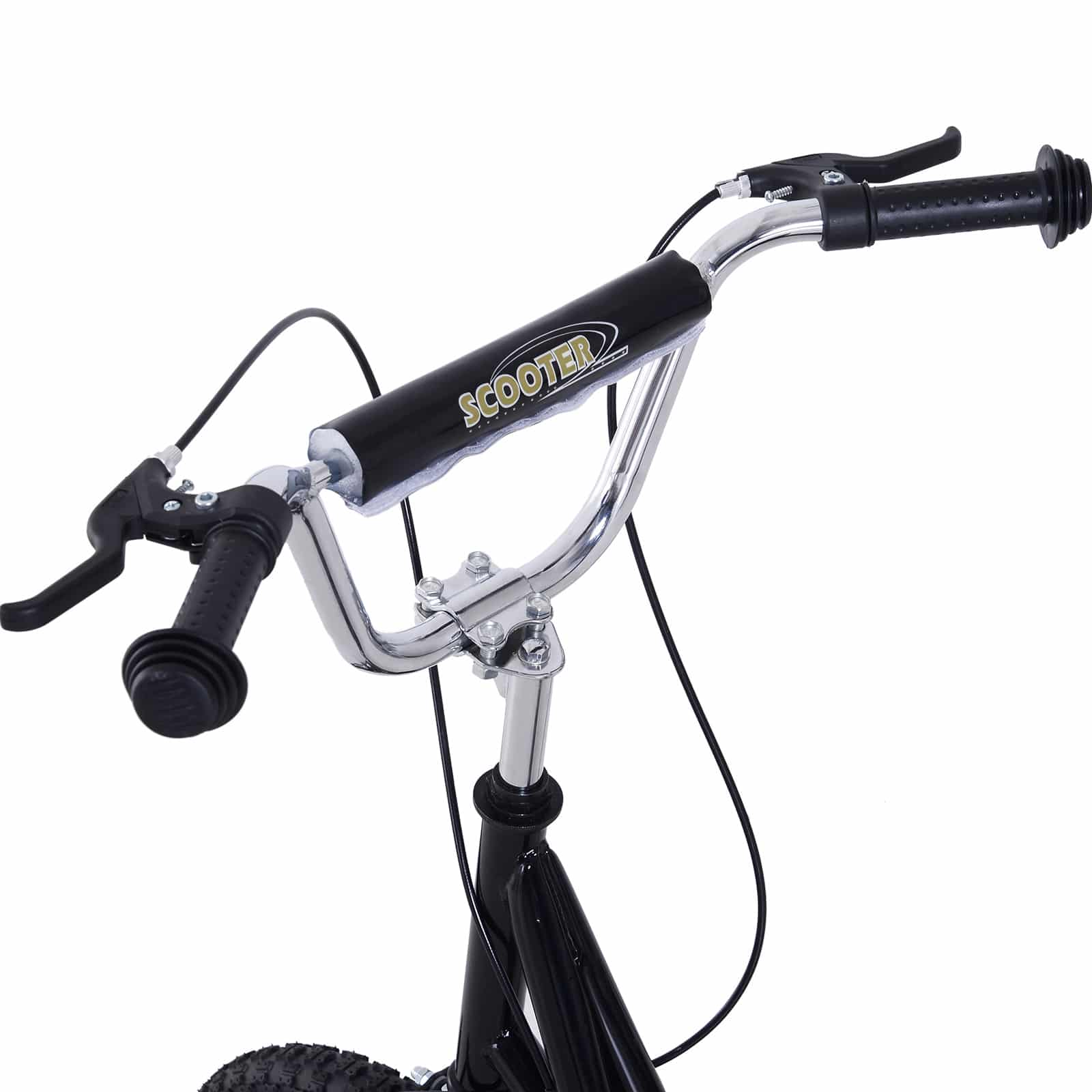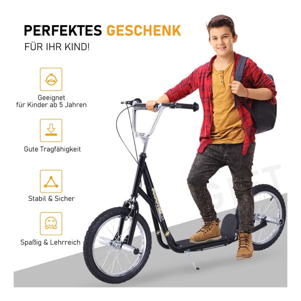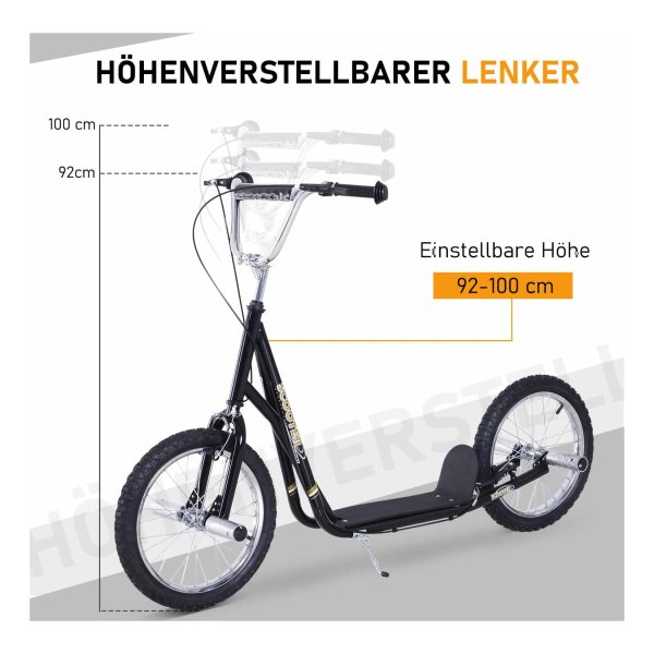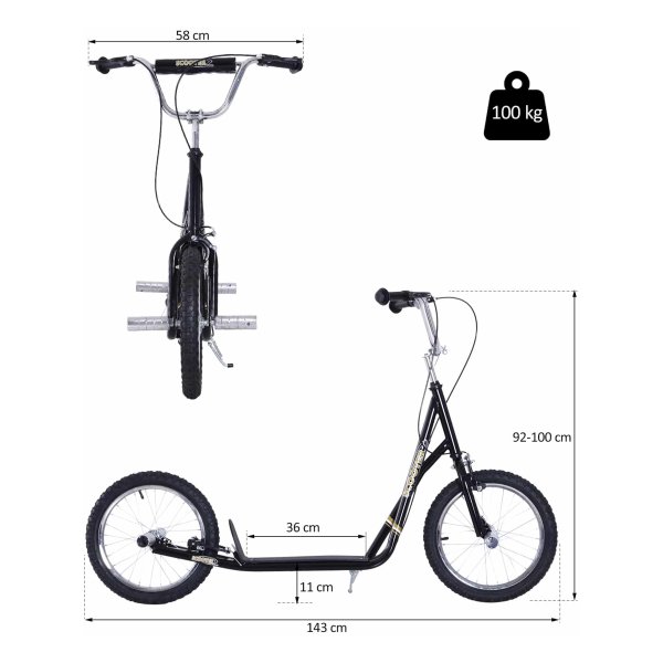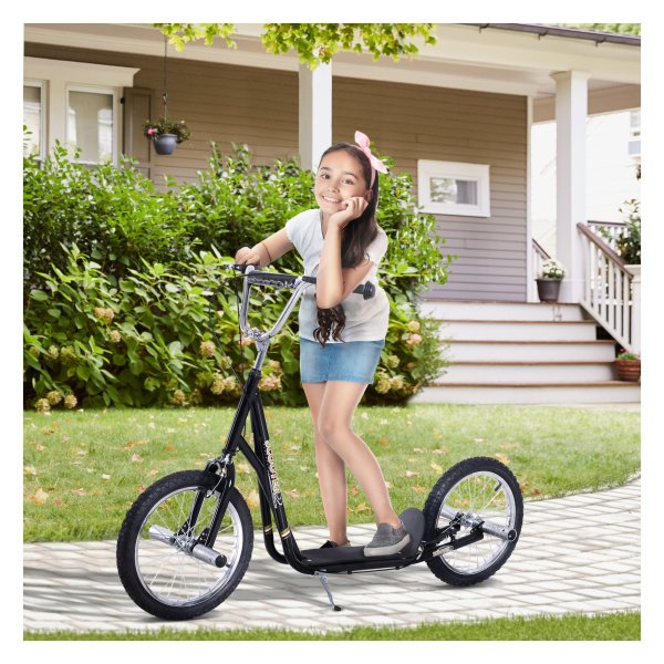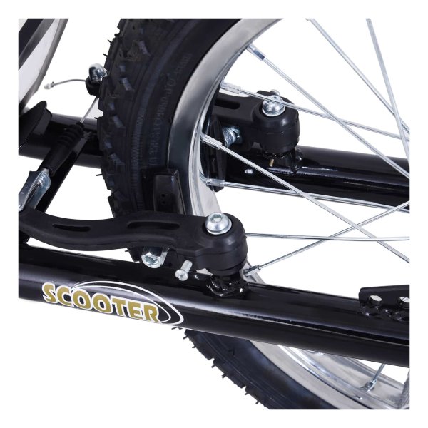 - De dikke luchtbanden zorgen voor stabiliteit en comfort tijdens het steppen. Dankzij de hoogwaardige 16″ stalen velgen en luchtbanden is het rijplezier optimaal en kunnen kinderen genieten van een soepele rit.
